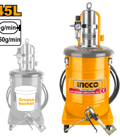 ₵3,025.00| Capacity:45L Drum application:365*430mm Pressure ratio: 50:1 Working pressure:6-8bar Max.free flowrate:850g/min Max.fluid pressure:400bar Cylinder dia:70mm Air consumption:250L/min@6.2bar 1/4″ inlet and outlet air regulator with water filtering device Grease hose:5M Weight:21KG Packed by carton box |