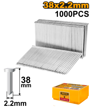 ₵71.00| Length:38mm 1000pcs/plastic box Suitable for ACN18641 Nail head:6.4mmX2.2mm Shank diameter:2.2mm Packed by plastic box |