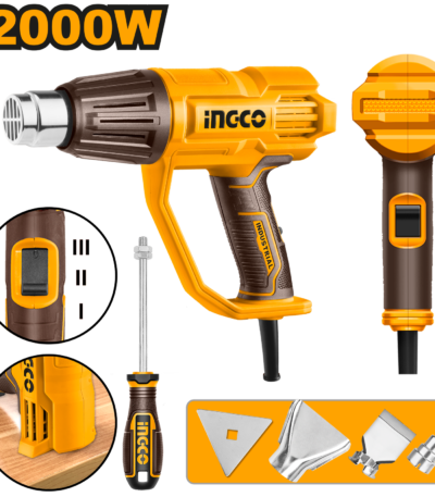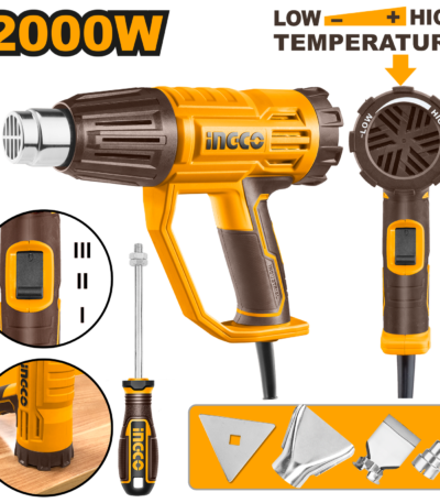 ₵430.00| Voltage: 220V-240V~50/60Hz Input power: 2000W Temperature: 50/50-450°C/50-550°C Airflow: 450/300/450 L/min Adjustable temperature with rotating back for precise control Include: 1 Pcs reduction nozzle 1 Pcs reflector nozzle 1 Pcs flat nozzle 1 Pcs scraper Packed by color box |