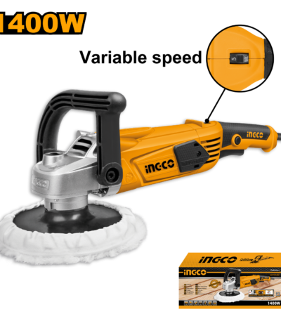 ₵1,040.00| Voltage:220-240V~50/60Hz Input power:1400W No-load speed:1500-4500rpm Polishing pad diameter:180mm Variable speed control Aluminum gear box Lock-off switch With 1pcs D-handle With 1pcs polishing pad With 1pcs polishing bonnet With 1set extra carbon brushes Packed by color box |