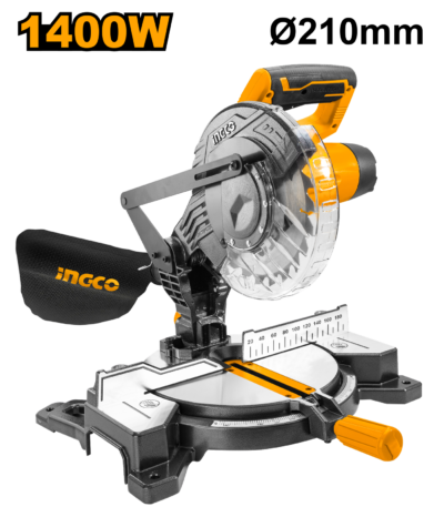 ₵1,515.00| Voltage:220-240V~50/60Hz Input power:1400W No-load speed:5000rpm Blade size:210mmx25.4mm Max.cutting capacity:55mmx120mm Mitre cuts 0-45°left and right Bevel cuts up to 45°to the left With 1set extra carbon brushes With 1pcs TCT blade With 1pcs dust bag Packed by color box |