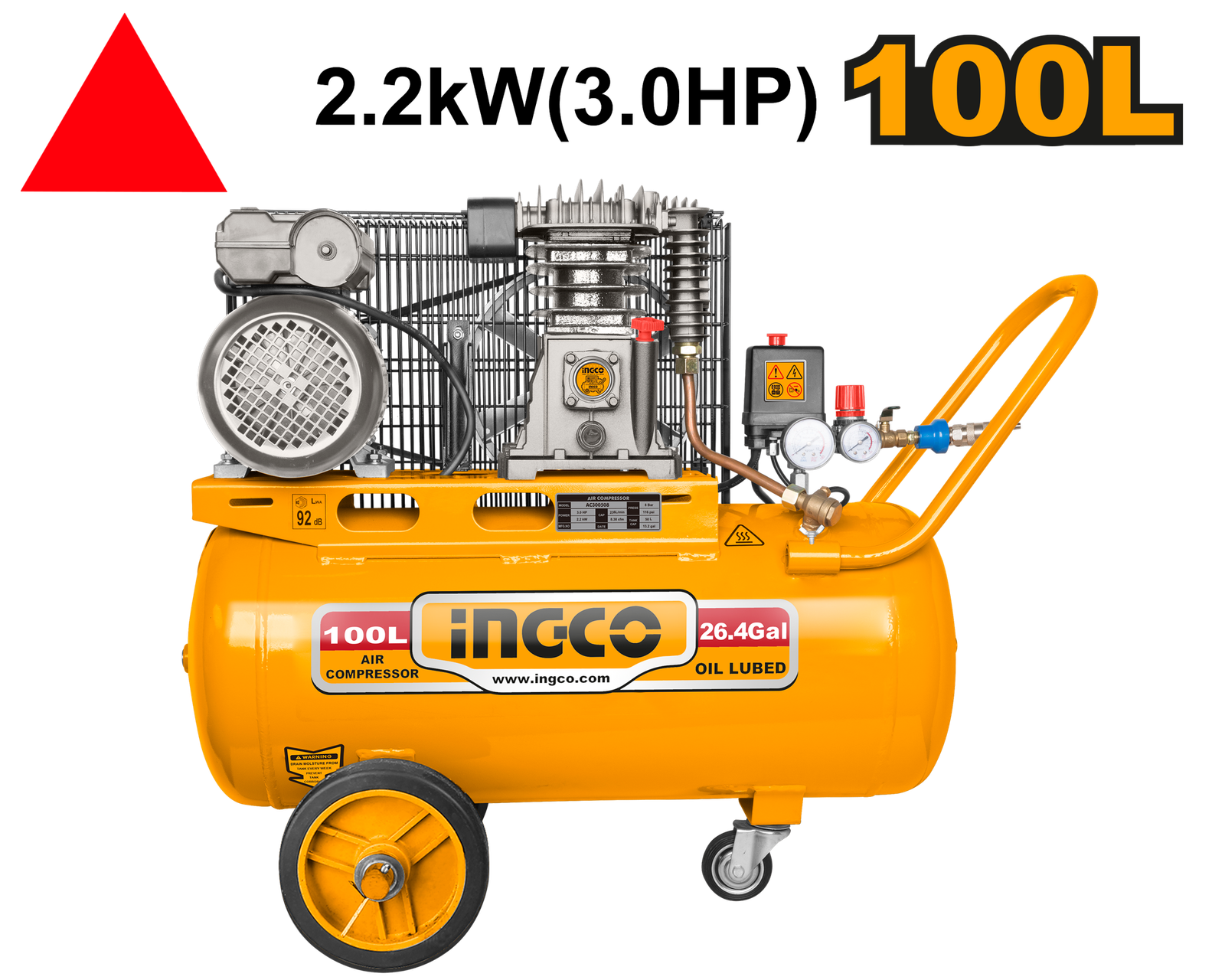 | Voltage:220-240V~50Hz Input power: 2.2kW (3HP) Tank:100L(26.4Gal) Noise:92db 3000Hr lifetime promise Aluminium wire motor Belt driving system Pump lubricated with oil No-load speed:1100rpm Operation pressure:max.8bar Packed by plywood case |