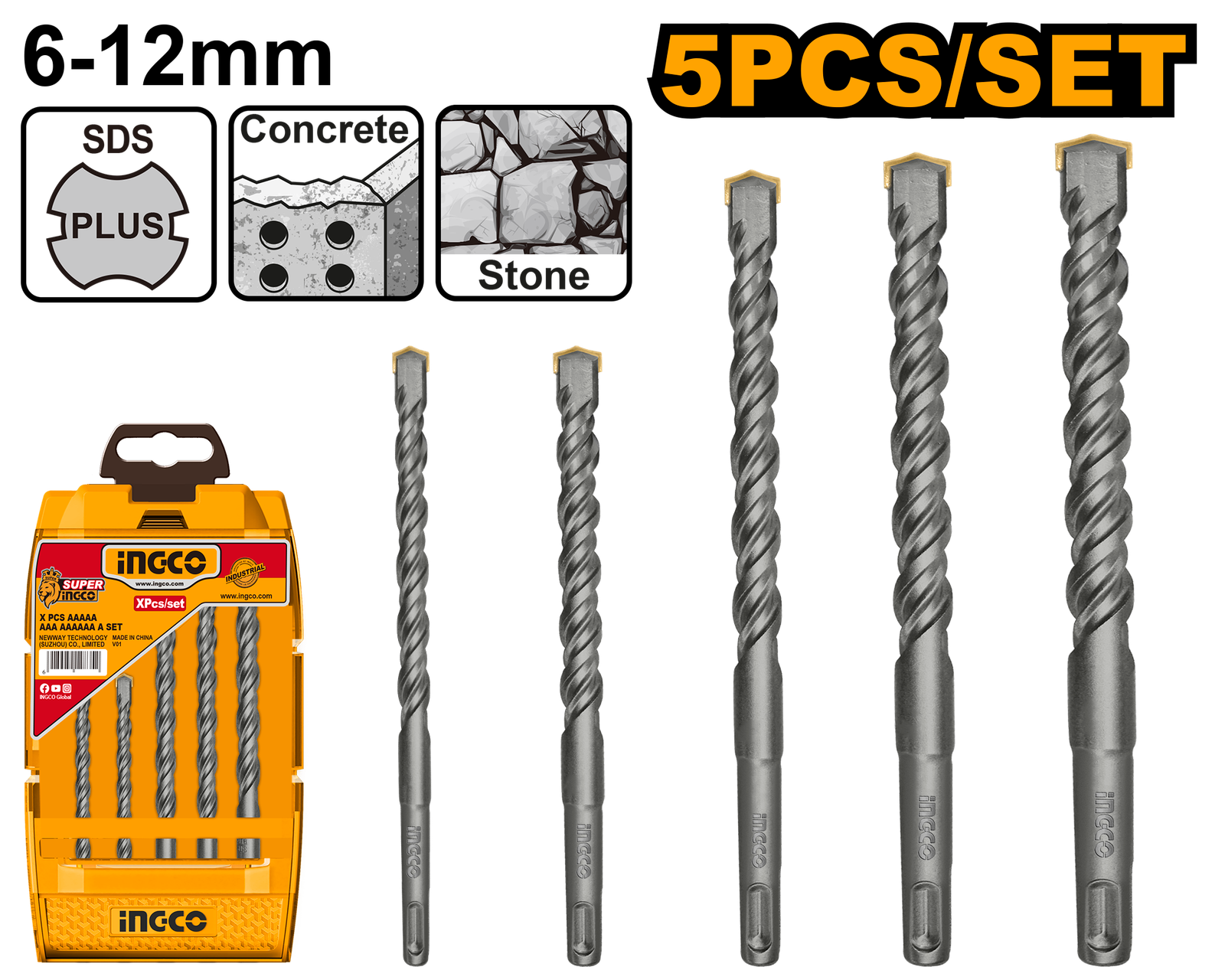 | 6X110mm,8X110mm,8X160mm,10X160mm,12X160mm 5 pcs SDS Plus hammer drill bits set Packed by plastic box |