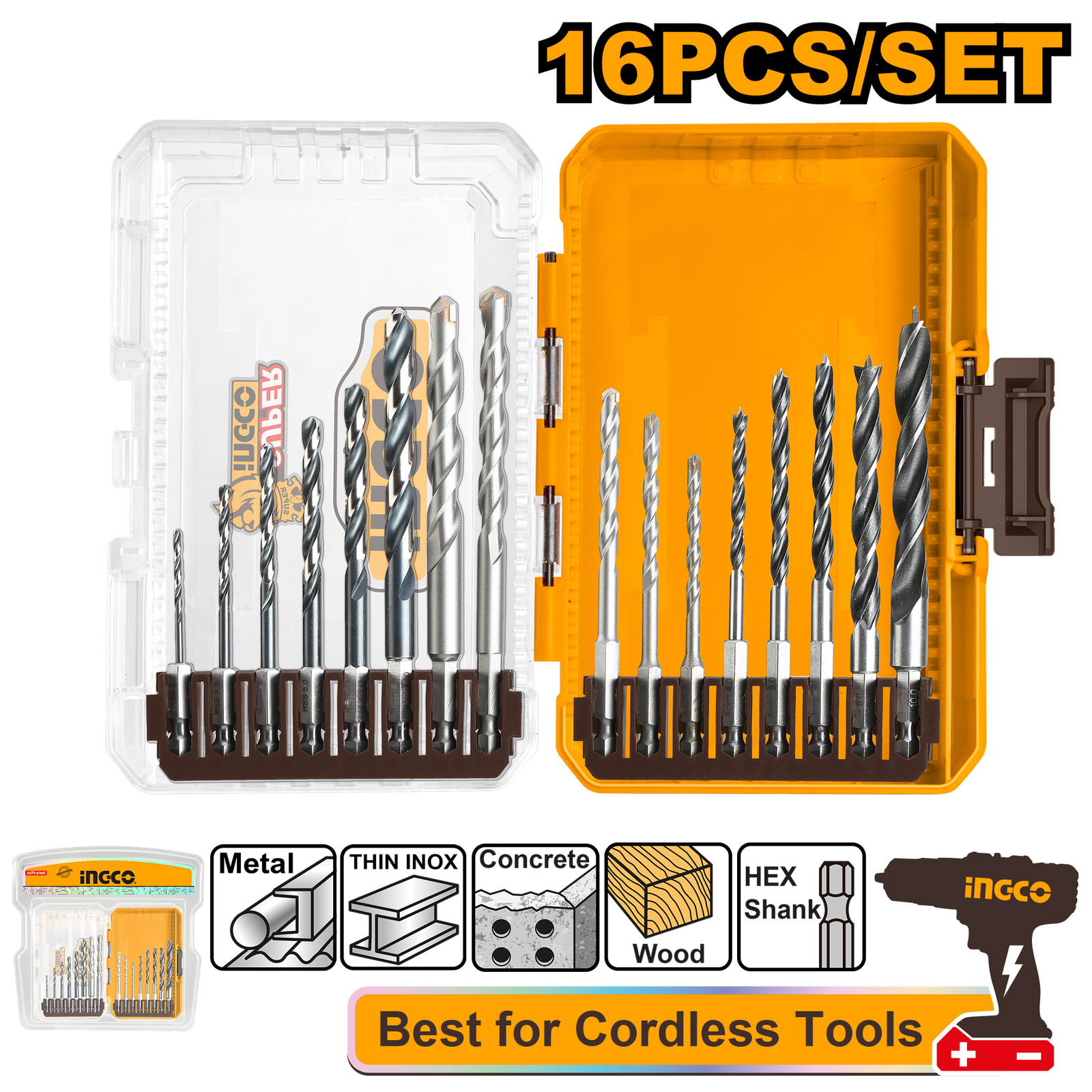 AKDL11606 (16 Pcs metal, multifunction drill, and wood drill bits set – P6C12)