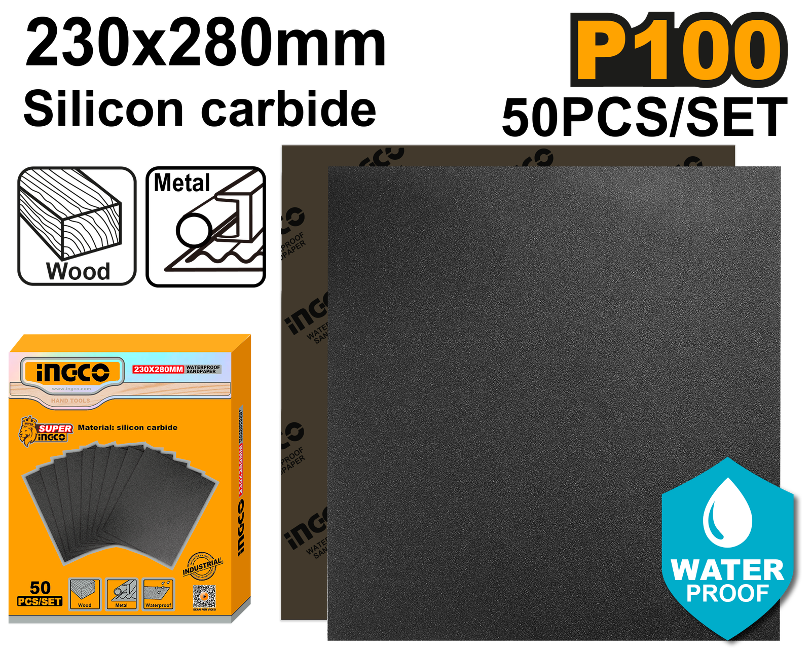 AKHS010016 (50pcs Waterproof Sandpaper 230x280mm P100 – P5C10)