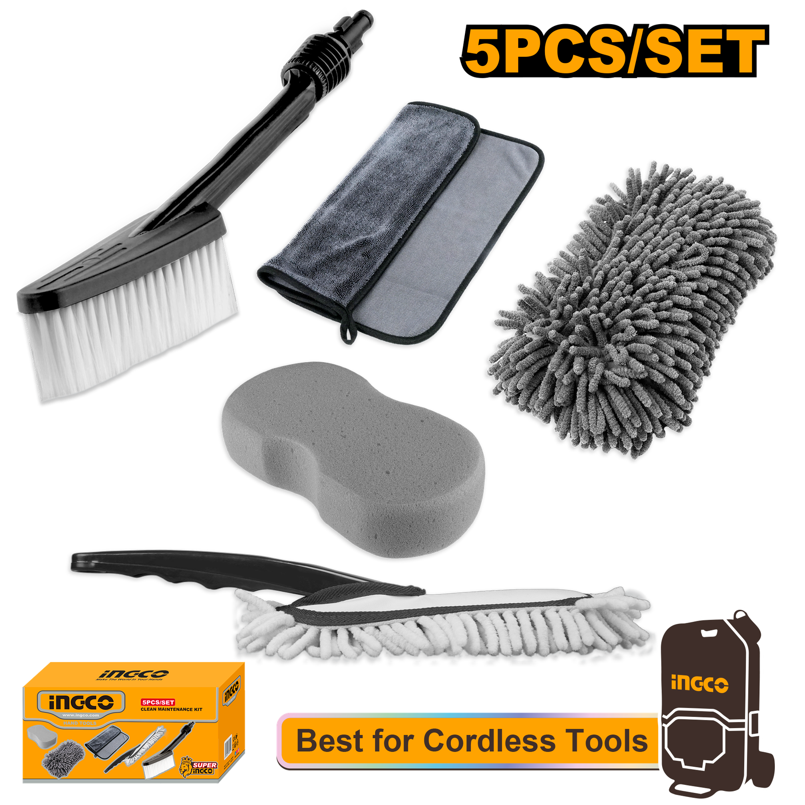 | 5 Pcs Clean maintenance kit set Suitable for CPWLI4006 Include: 1 Pcs car wash towel 1 Pcs car wash glove 1 Pcs car wash sponge 1 Pcs car wash mop kit 1 Pcs fix brush Packed by color box |