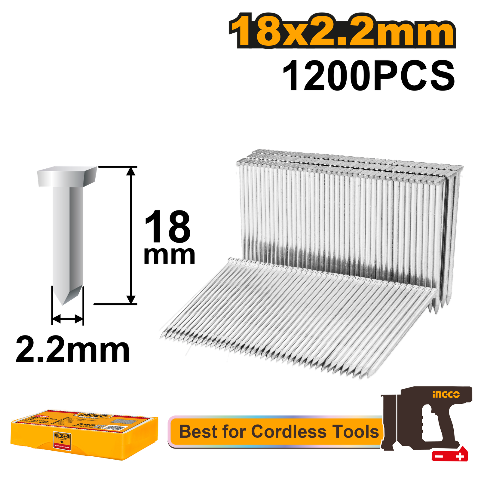 | Length:18mm 1200pcs/plastic box Suitable for CSTLI3805, CSTLI3808 Nail head:6.4mmX2.2mm Shank diameter:2.2mm Packed by plastic box |