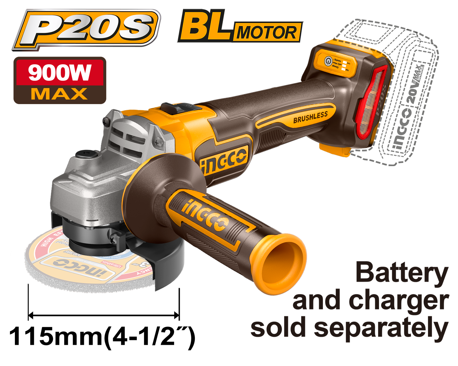 CAGLI21154 (Lithium-Ion angle grinder 20V 4.5″ – P1C6)
