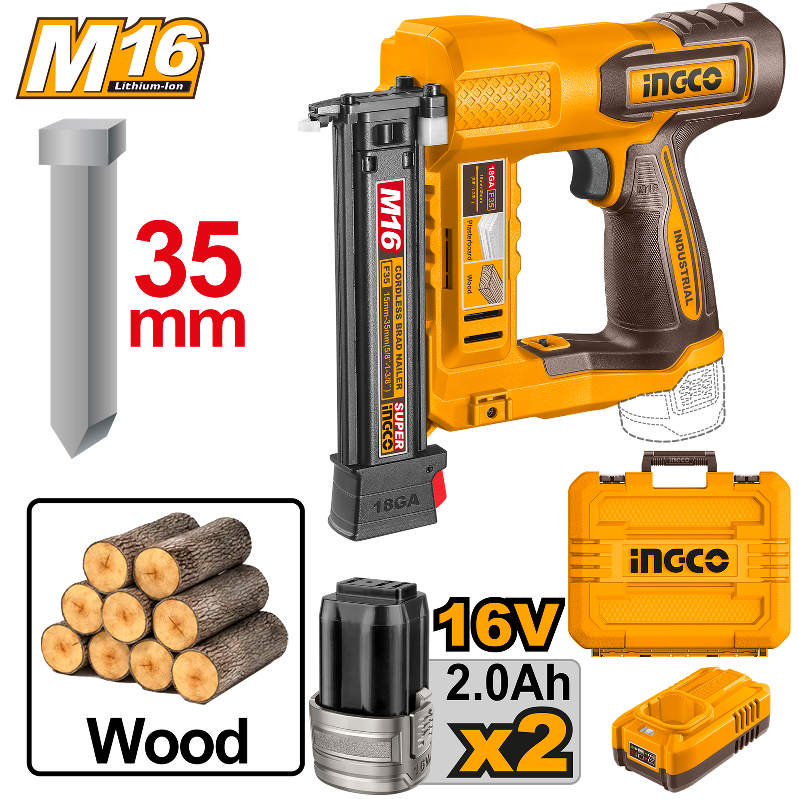 CBNLI2038 (Cordless brad nailer for wood 16V 35mm + 2 Battery – P1C6)