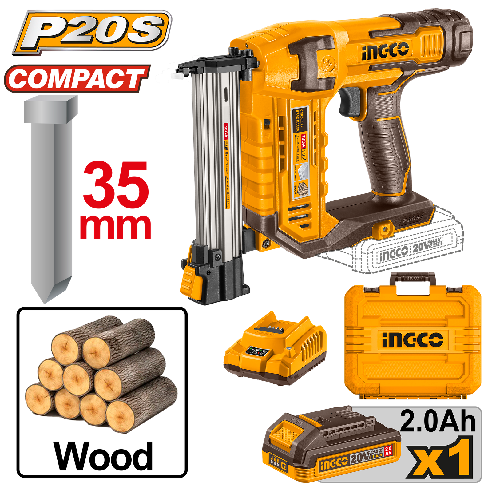 | Voltage:20V Nail type: F15~F35 Drive rate: 3 nails/s Magazine capacity: 105pcs Net weight: 1.7kg Include: 1000 Pcs brad nails (35mm) 1pcs air nozzle 1pcs pin 1 Pcs 20V 2.0AH battery(FBLI2001) 1 Pcs charger(FCLI2001E) Charge volts: 220-240V~50/60Hz Packed by plastic box Suitable for: ANA18201,ANA18251,ANA18301,ANA18351 |