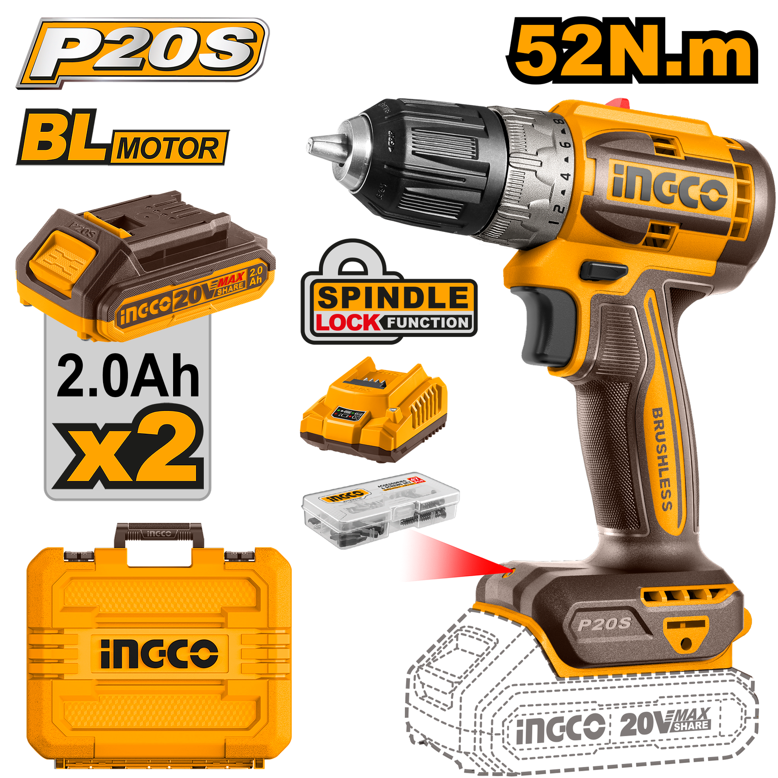 CDLI20453 (Brushless cordless drill 20V 52Nm + 2 Battery – P1C5)