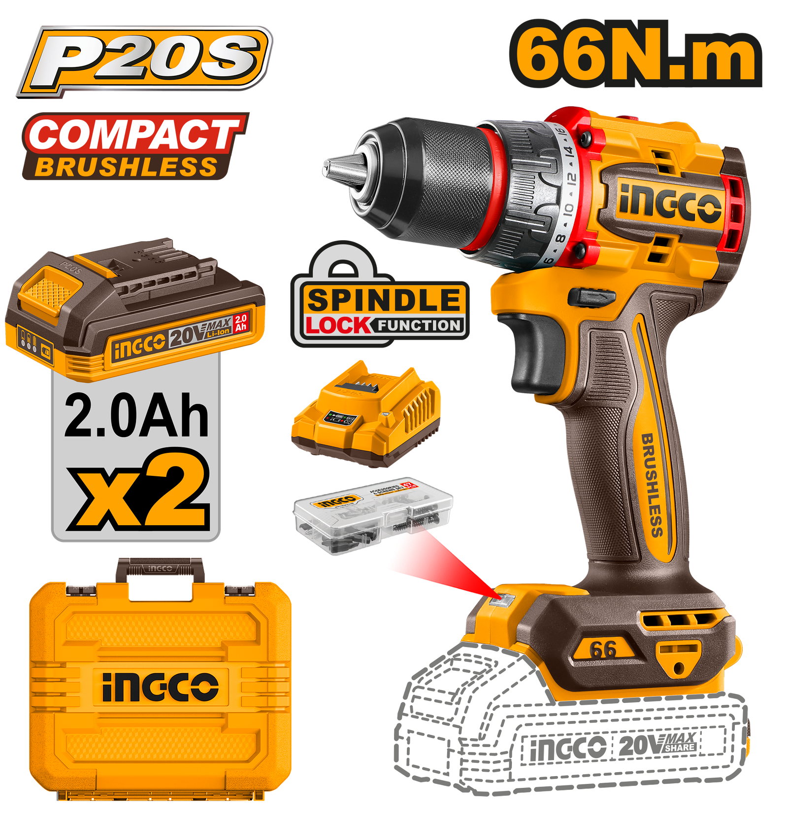 CDLI20668 (Cordless Drill 20V 66Nm + 2 Battery – P1C5)