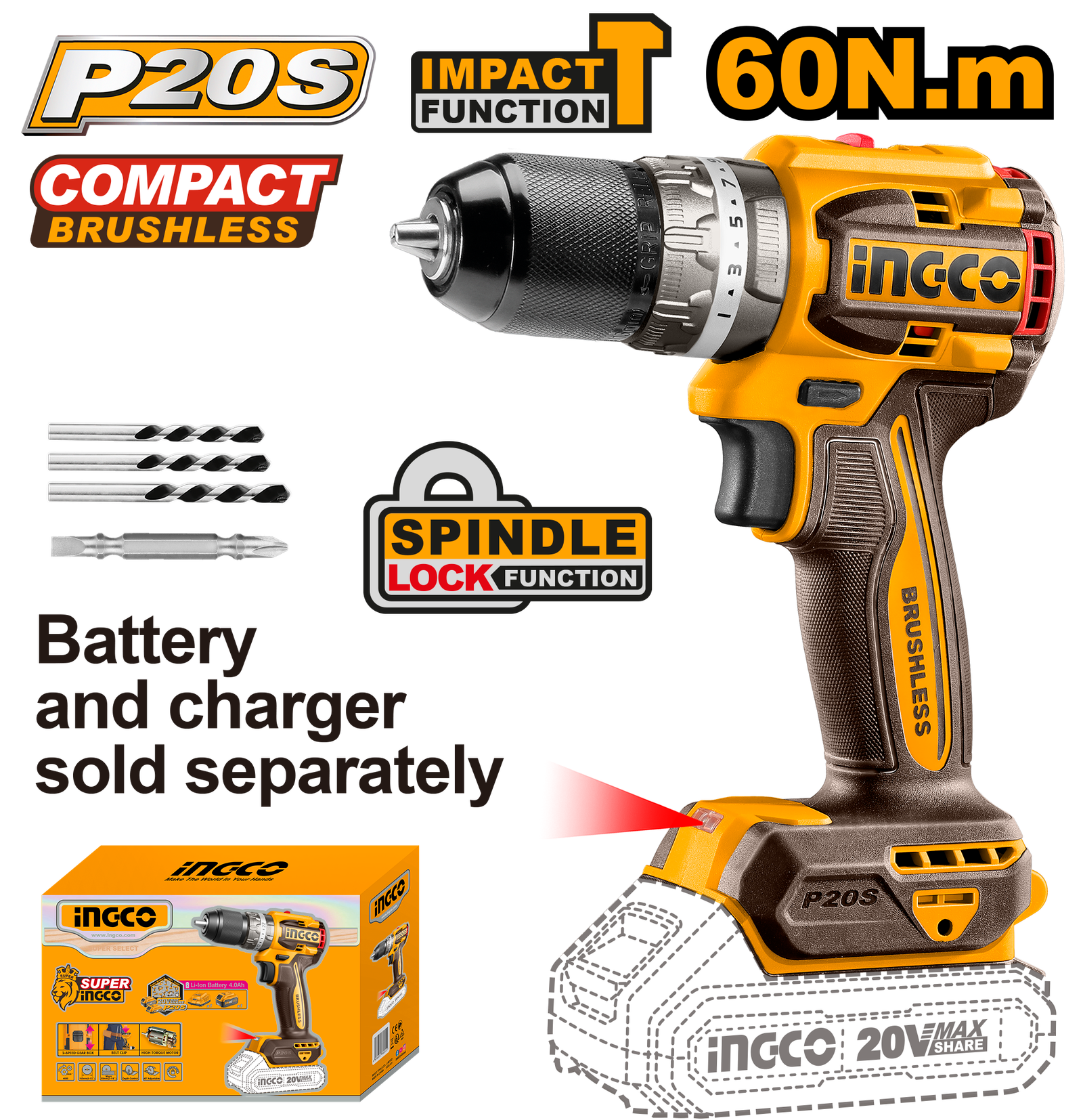 CIDLI206021 (Compact Brushless Cordless Impact Drill 20V 60Nm – P1C5)