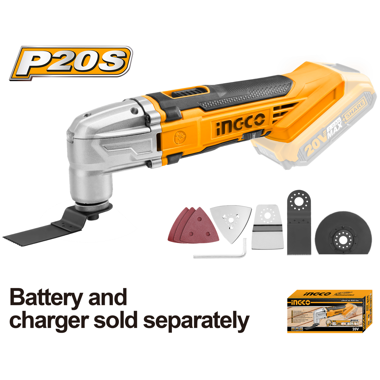 | Voltage:20V No-load speed:5000-20000rpm Oscillation angle: 3.2° 6 speed adjustment Include: 1 Pcs flexible scraper 1 Pcs cutting saw blade 1 Pcs segment saw blade 1 Pcs hex key 1 Pcs sanding base 3 Pcs sanding paper Battery and charger sold separately Packed by color box |