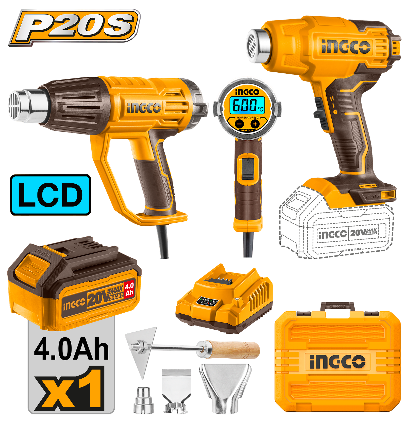 | Voltage:20V With 1pcs lithium-ion heat gun(HGLI20025) With 1pcs heat gun(HG200058) Lithium-ion heat gun(HGLI20025): Temperature:300/550°C Airflow:100/200 L/min Heat gun(HG200058): Voltage: 220V-240V~50/60Hz Input power: 2000W Temperature: 50/50-600/50-600°C Airflow: 450/300/450 L/min Adjustable temperature with LCD display for precise control Include: 1 Pcs reduction nozzle 1 Pcs reflector nozzle 1 Pcs flat nozzle 1 Pcs scraper 1 Pcs 4.0Ah battery pack(FBLI20021) 1 Pcs 20V charger(FCLI2001) Charge volts: 220-240V~50/60Hz Packed by carrying case |