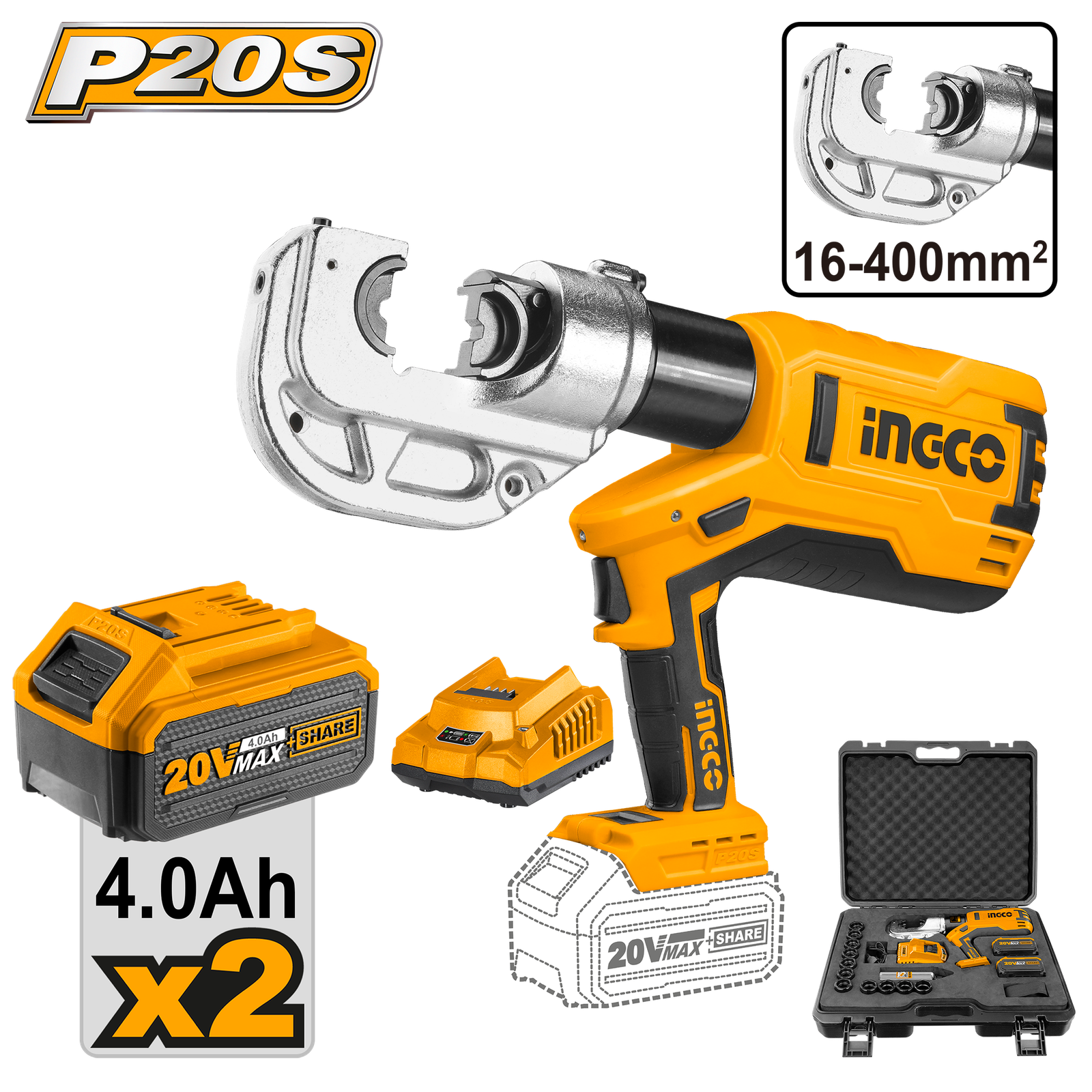 | Drill voltage: 20V crimping range:16-400mm² Crimping force:120KN Crimp cycle:6-18s(depend on the size of cable) Stroke:42mm 2pcs 20V Cordless 4.0Ah batteries LED usage count display ACCESSORIES: Crimping dies:16,25,35,50,70,95,120,150,185,240,300,400mm2 With 2pcs battery pack With 1pcs charger With 1set Sealing ring of cylinder With 1set Sealing ring of safety with 1set valve With 1set hydraulic fluid With 1pcs hydraulic fluid bag Packed by plastic box+Color box |