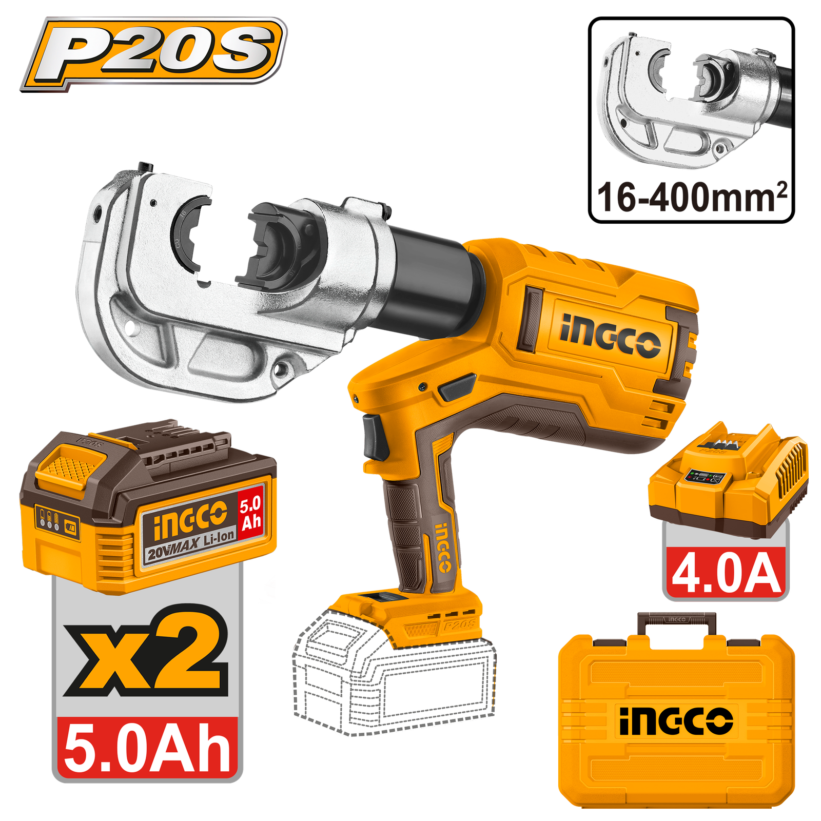CTLI2005 (Cordless hydraulic crimping tool 20V 120kN + 2 Battery – P1C1)
