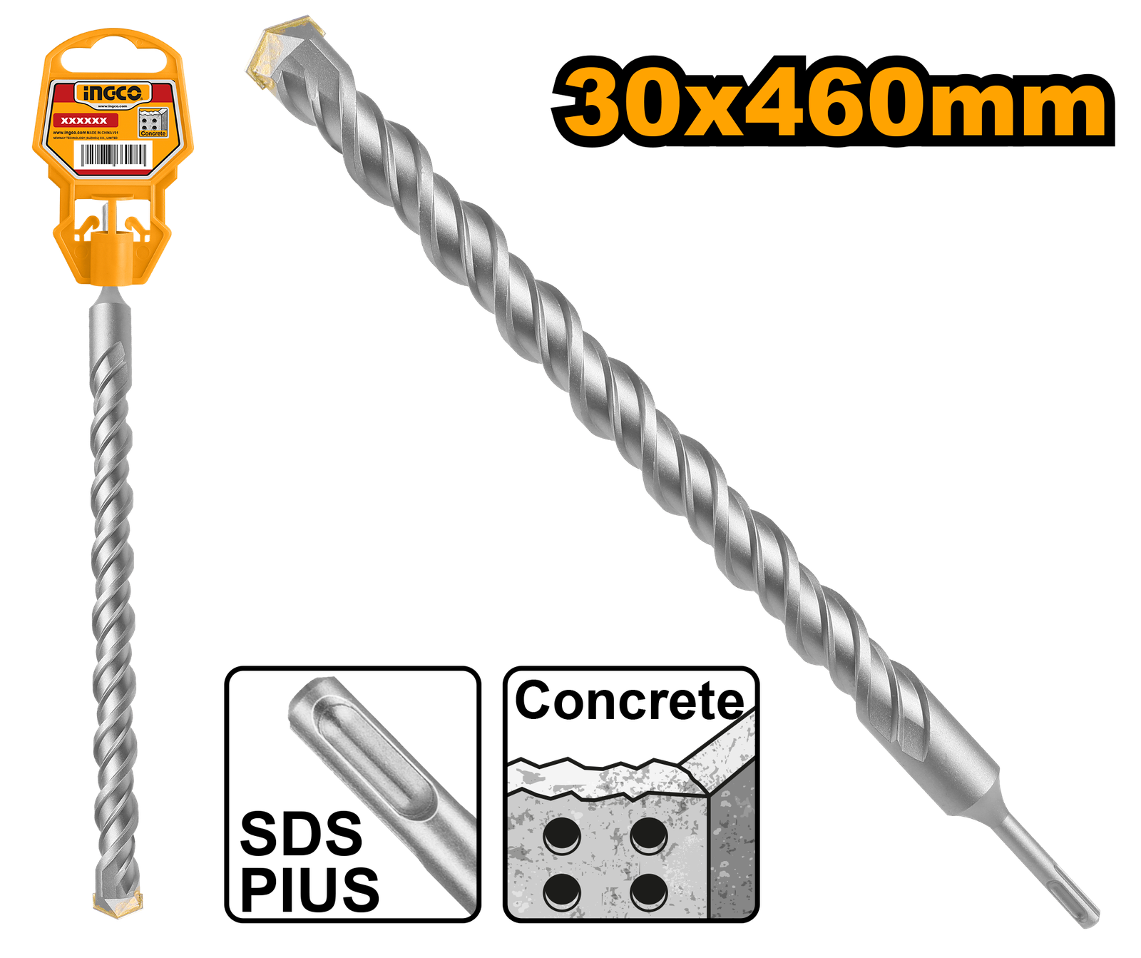 | 30x460mm,SDS plus Used for concrete, brick wall and cement wall drilling High wear resistance and strength Packed by plastic hanger |