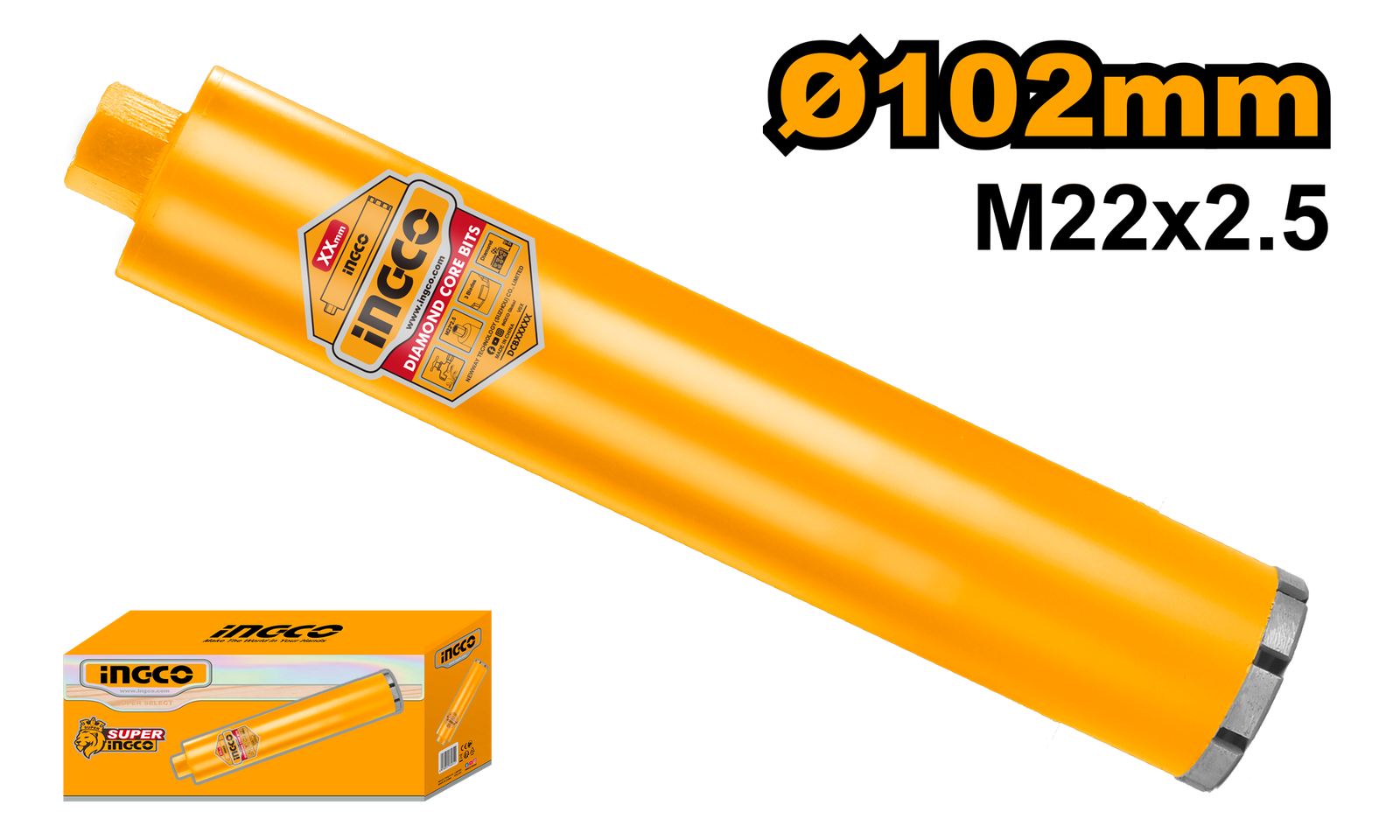 | Type:Wet Laser welded segments Diameter:102mm Length: 450mm Adaptor:M22 x 2.5 Special for cutting concrete with rebar Suitable for,DDM28001 and DDM38001 Packed by carton box |