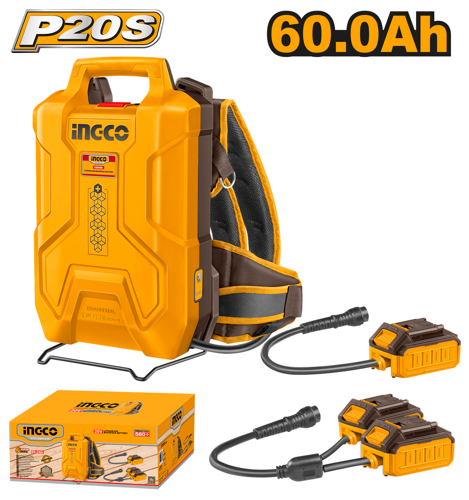 | Voltage: 20V/20V+20V Capacity: 60.0Ah/30.0Ah(1080Wh) LED battery power indicator One battery fits all P20S multiple tools Packed by color box |
