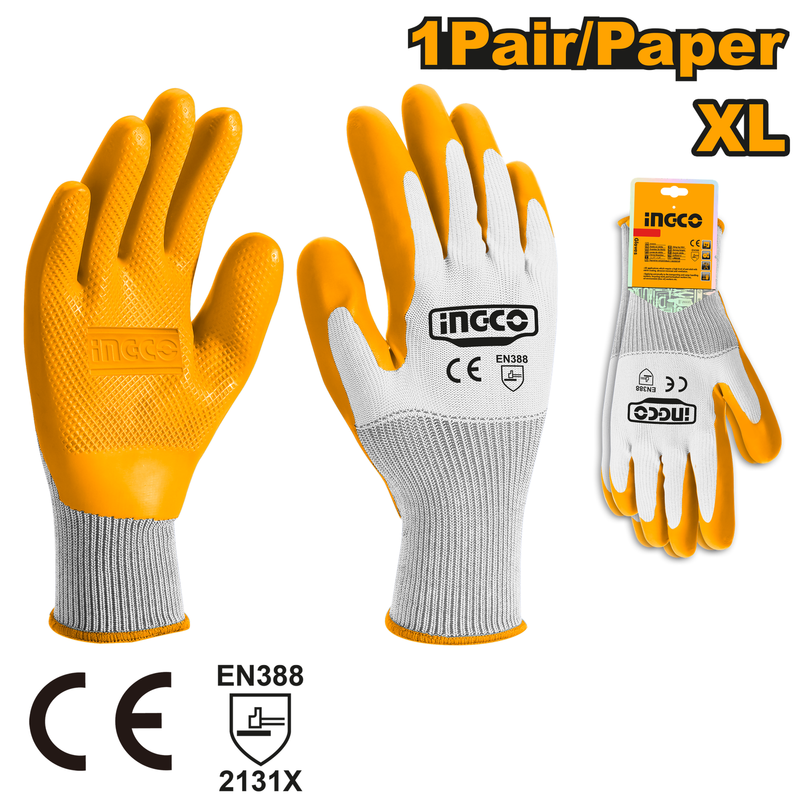 | “Size:XL Liner Material:Polyester Coating material/Finish: embossed latex Gauge:13 Protection level:2131X 1pair/paper Use for heavy cargo handling worker, slight sharp objects carrier etc. From pressing,longer life time than normal. Polyester seamless knitted shell. Textured palm dip for extra grip and durability. Packed by poly bag |