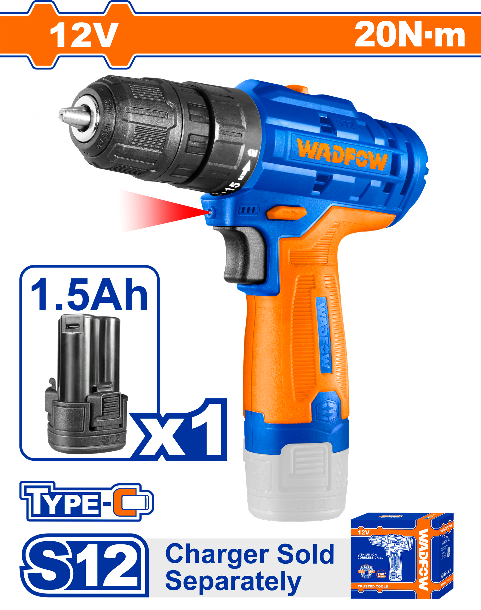 WCDS520 (Wadfow Cordless drill 12V +1 Battery 2 Speed – P1C10)