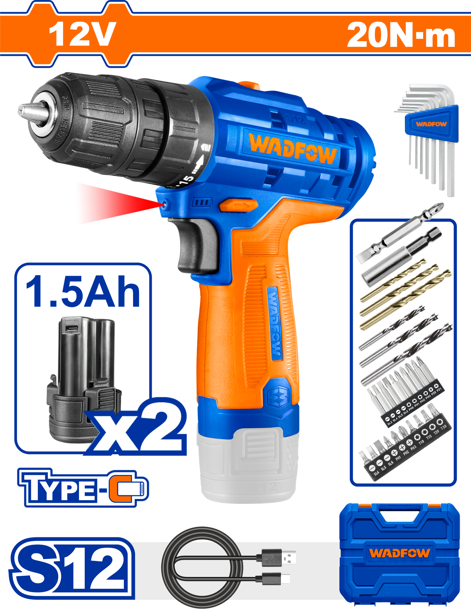 WCDS525 (Wadfow Cordless drill 12V + 2 Battery Type C – P1C5)