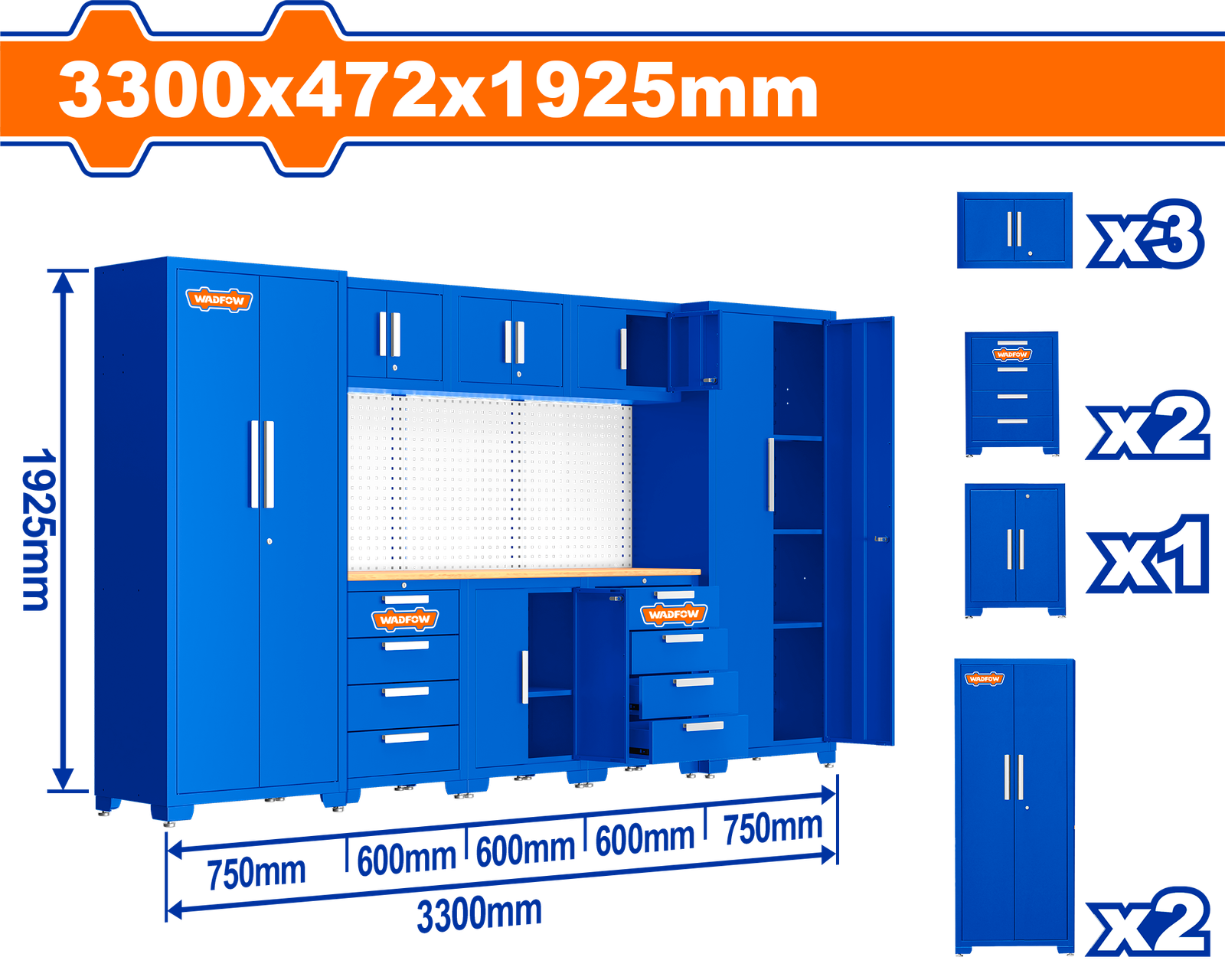 WCS3A08 (Wadfow Heavy-duty modular garage cabinets 3.3×1.9m – P1C1)