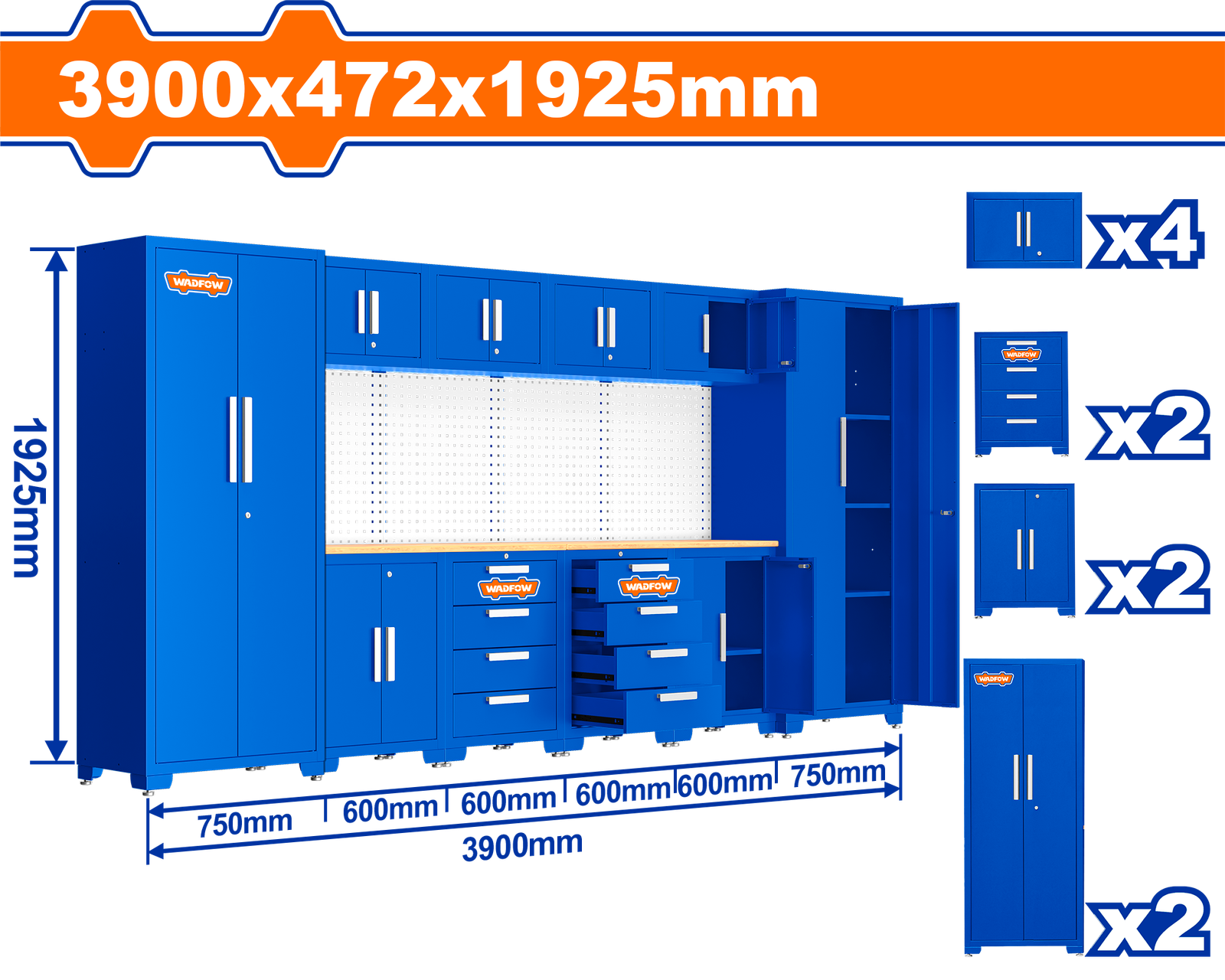 WCS3A10 (Wadfow Heavy-duty modular garage cabinets 10 pcs – P1C1)
