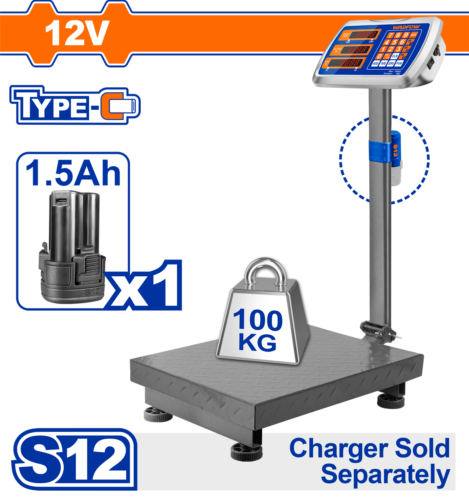 WEC1302 (Wadfow Cordless scale 12V 100kg + Battery – P1C1)