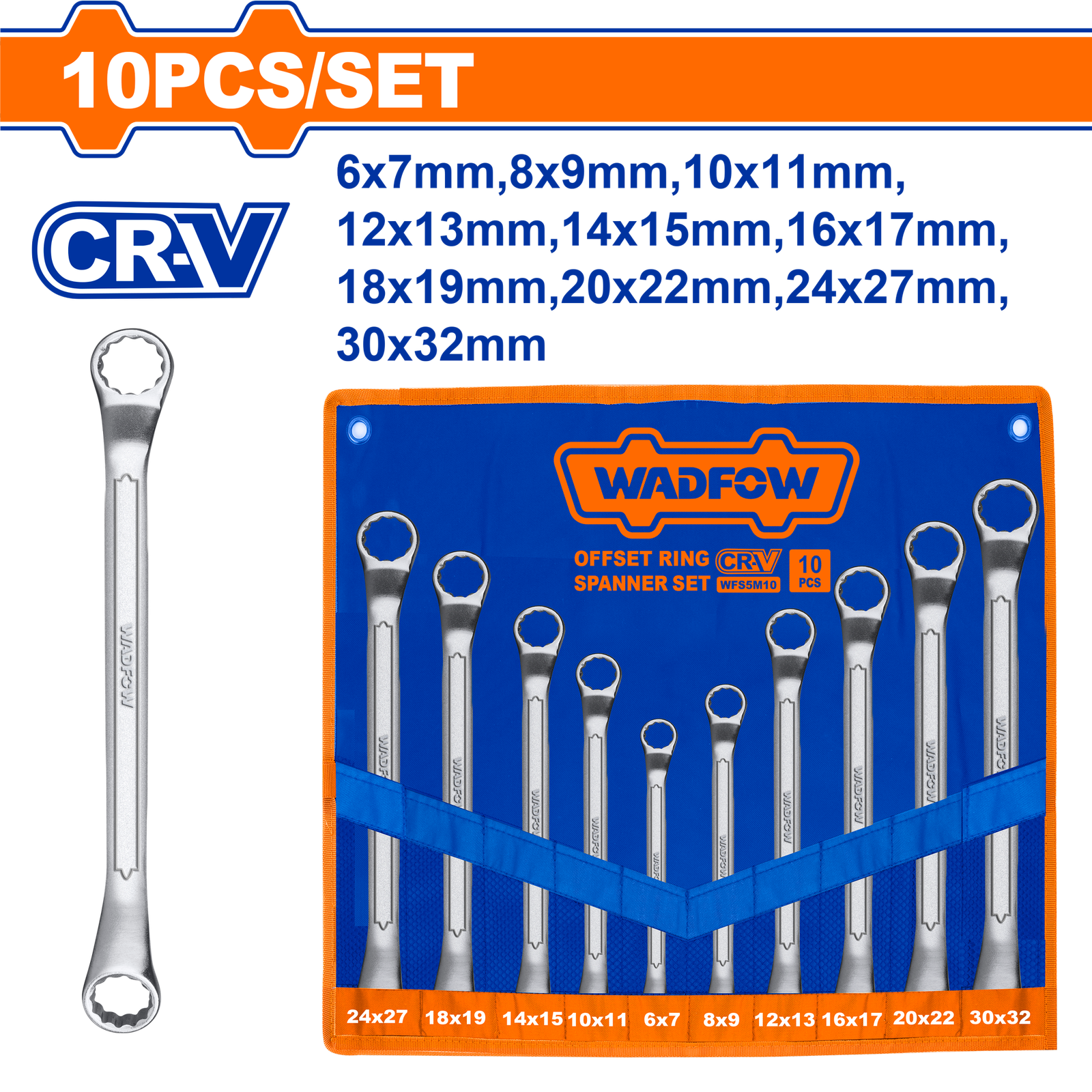 WFS5M10 (Wadfow 10 Pcs Offset ring spanner set 6-32mm – P1C8)
