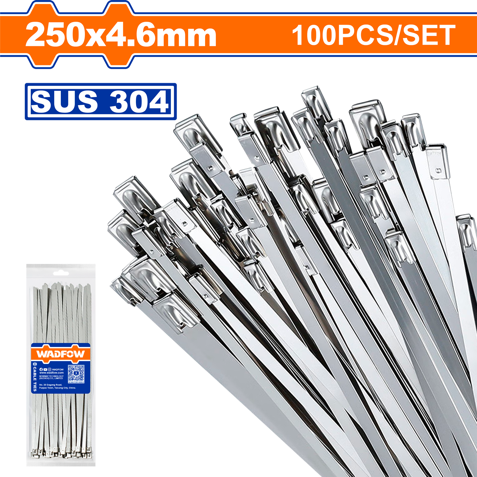 | Heavy duty 304 stainless steel cable ties Length:150mm Width:4.6mm 100pcs/set Type: self lock Packed by label |