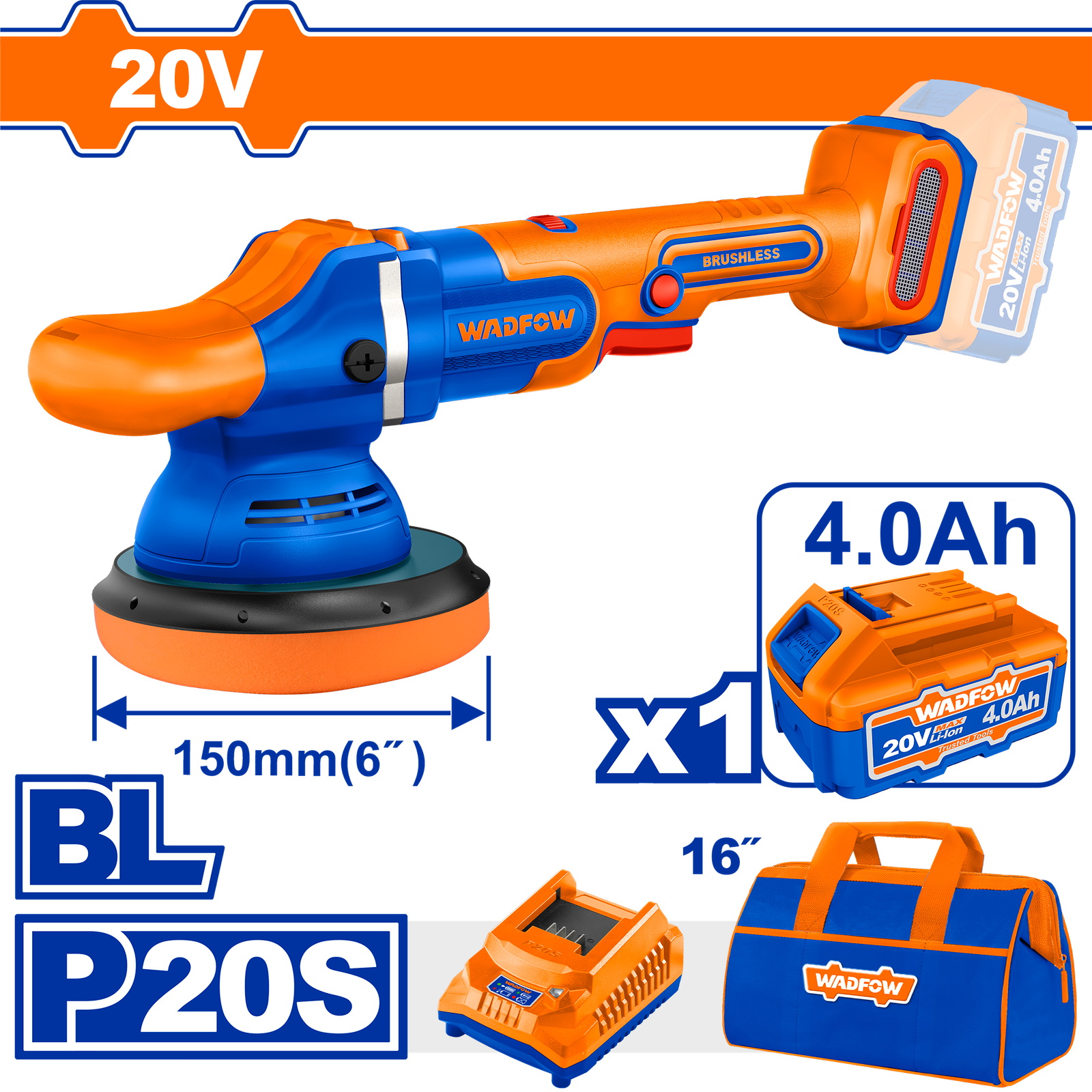 WHL2B151 (Wadfow Cordless polisher 20V 6″ + Battery – P1C4)