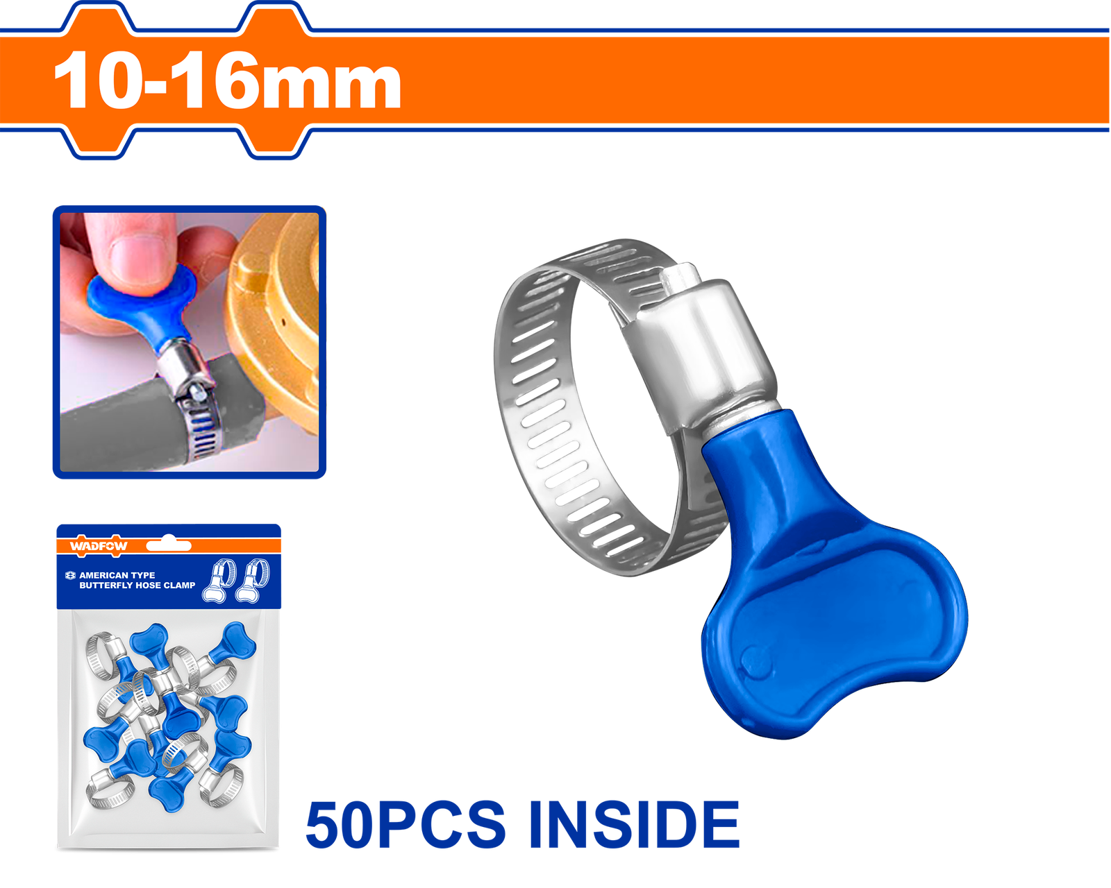WHU3902 (Wadfow American type butterfly hose clamp 10-16mm – C2000)