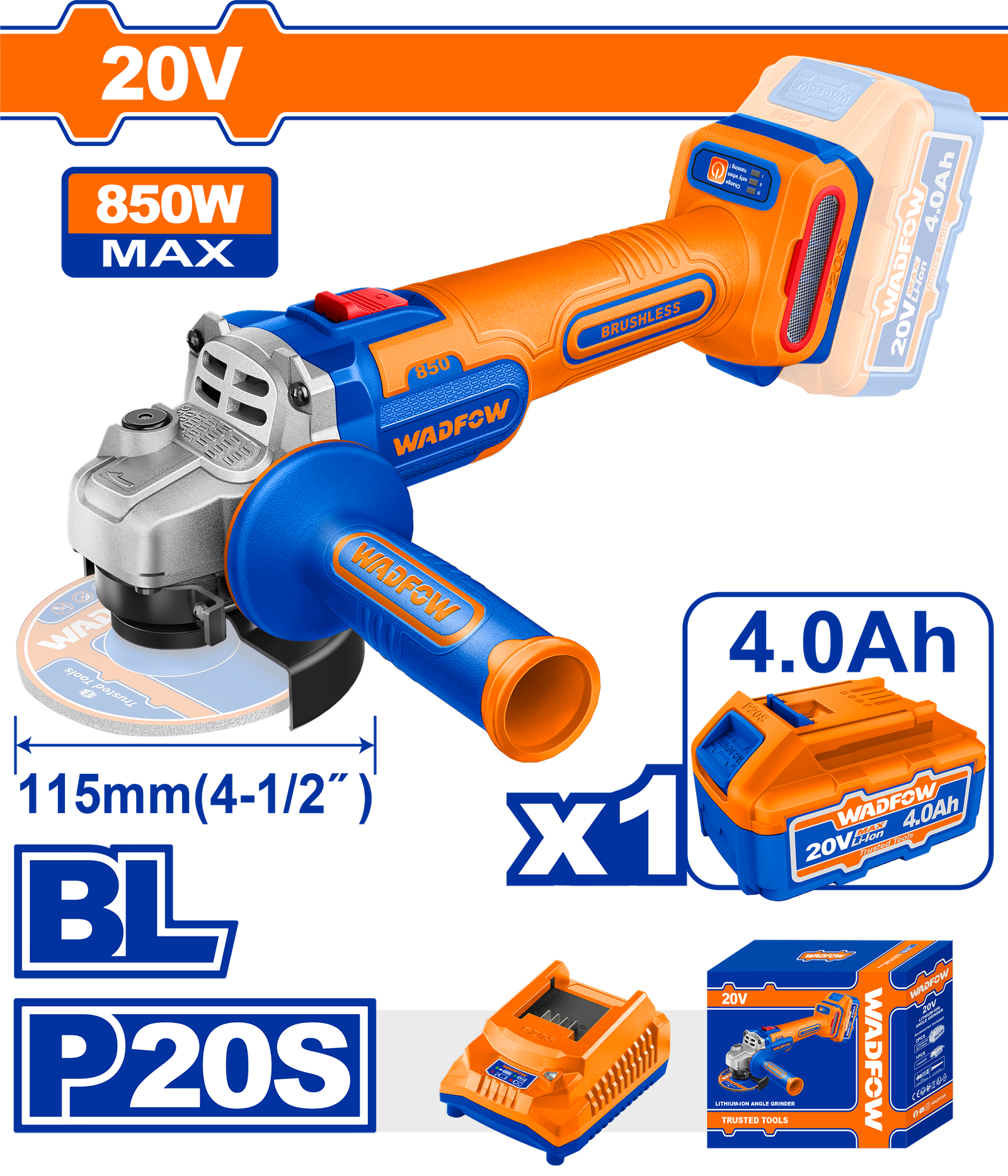 WLAP5421 (Wadfow Cordless angle grinder 20V 850W 4.5″ + Battery – P1C6)