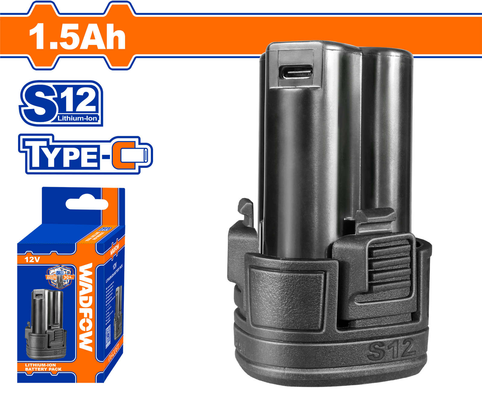 | Voltage:12V Lithium-ion 1.5Ah battery Charging port:USB type-c One battery fits all S12 multiple tools Packed by color box |