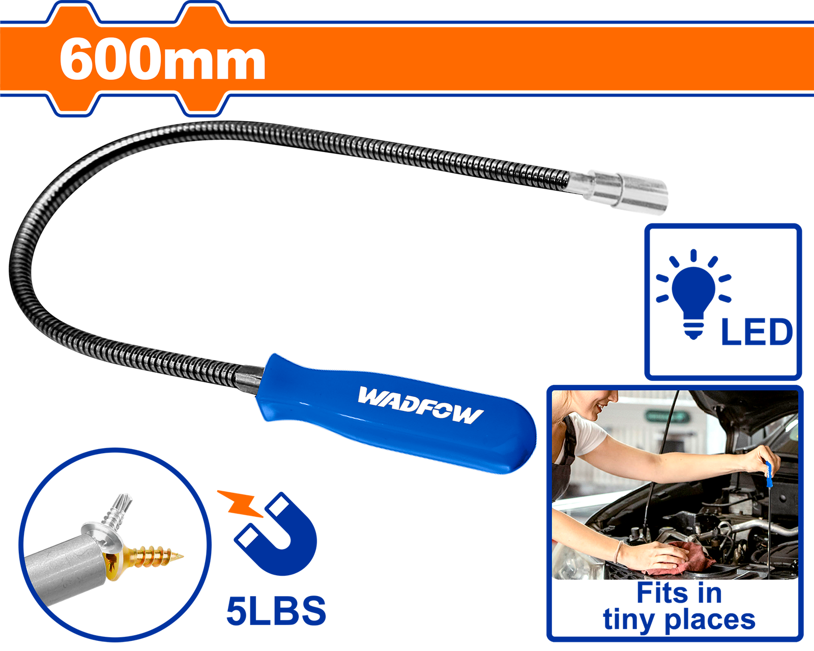 | Size:600mm Magentic power: 5LBS Flexible shaft With LED lighting function Plastic handle Packed by paper hanger |