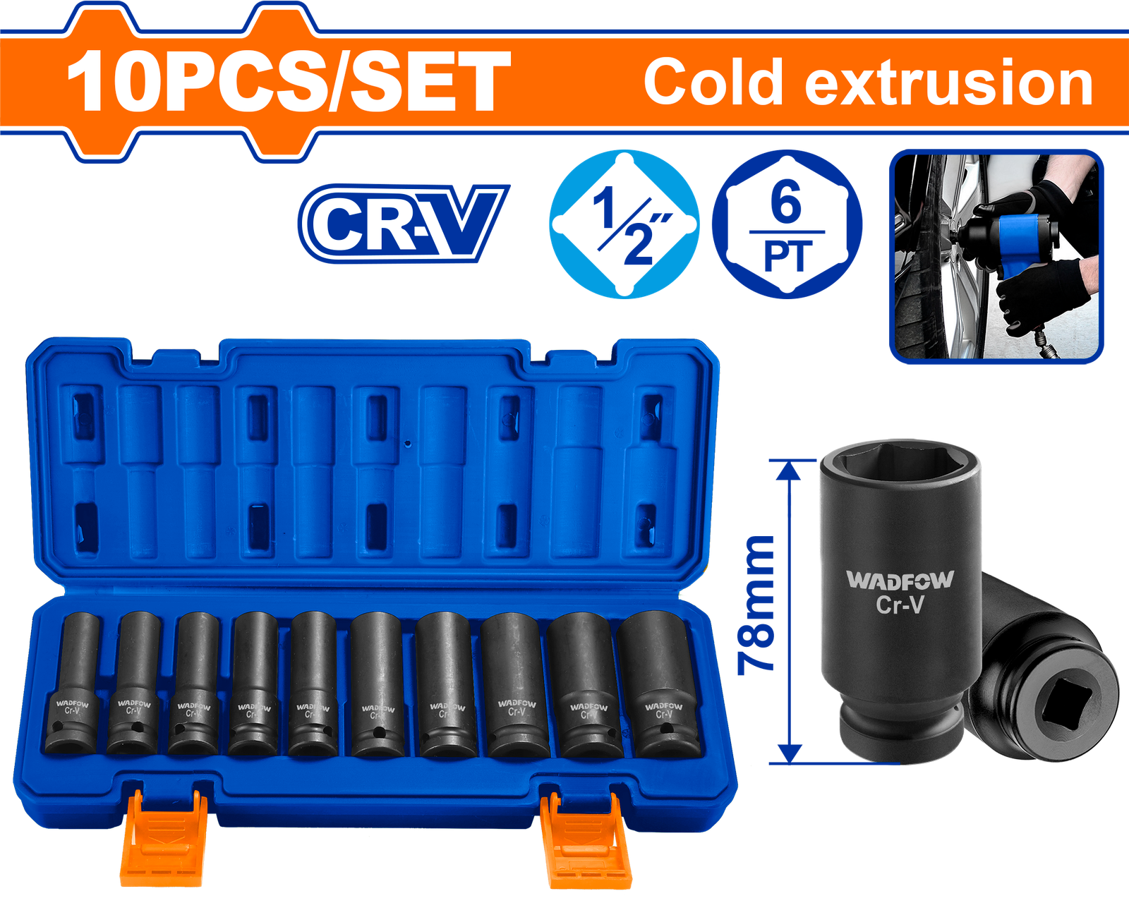WMS2D02 (Wadfow 10 Pcs 1/2″ deep impact socket set – P1C10)