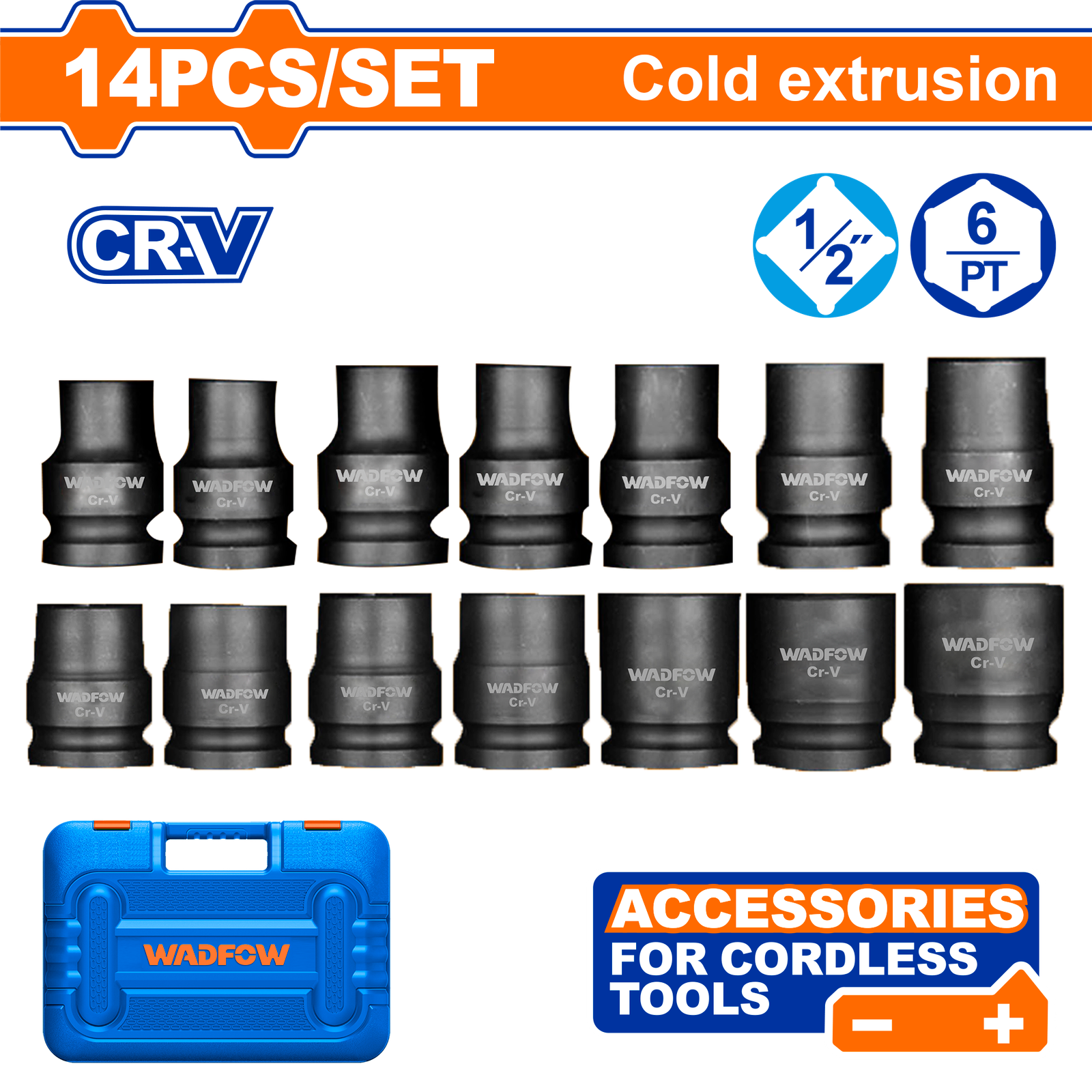 WMS4D01 (Wadfow 14 Pcs 1/2″Dr. Impact socket set 10-27mm – P1C8)