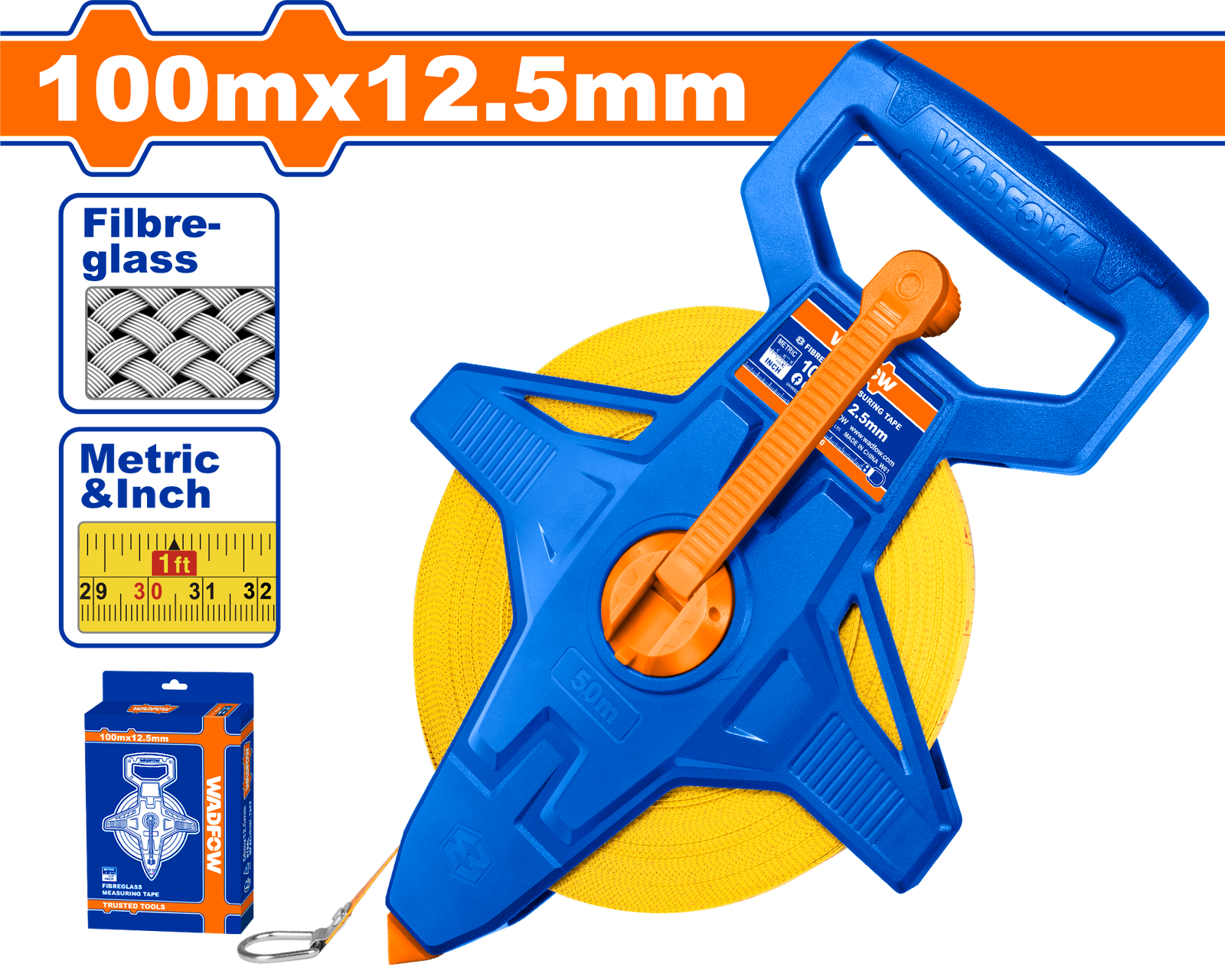 WMT25100 (Wadfow Fibreglass measuring tape 100×12.5mm – C10)