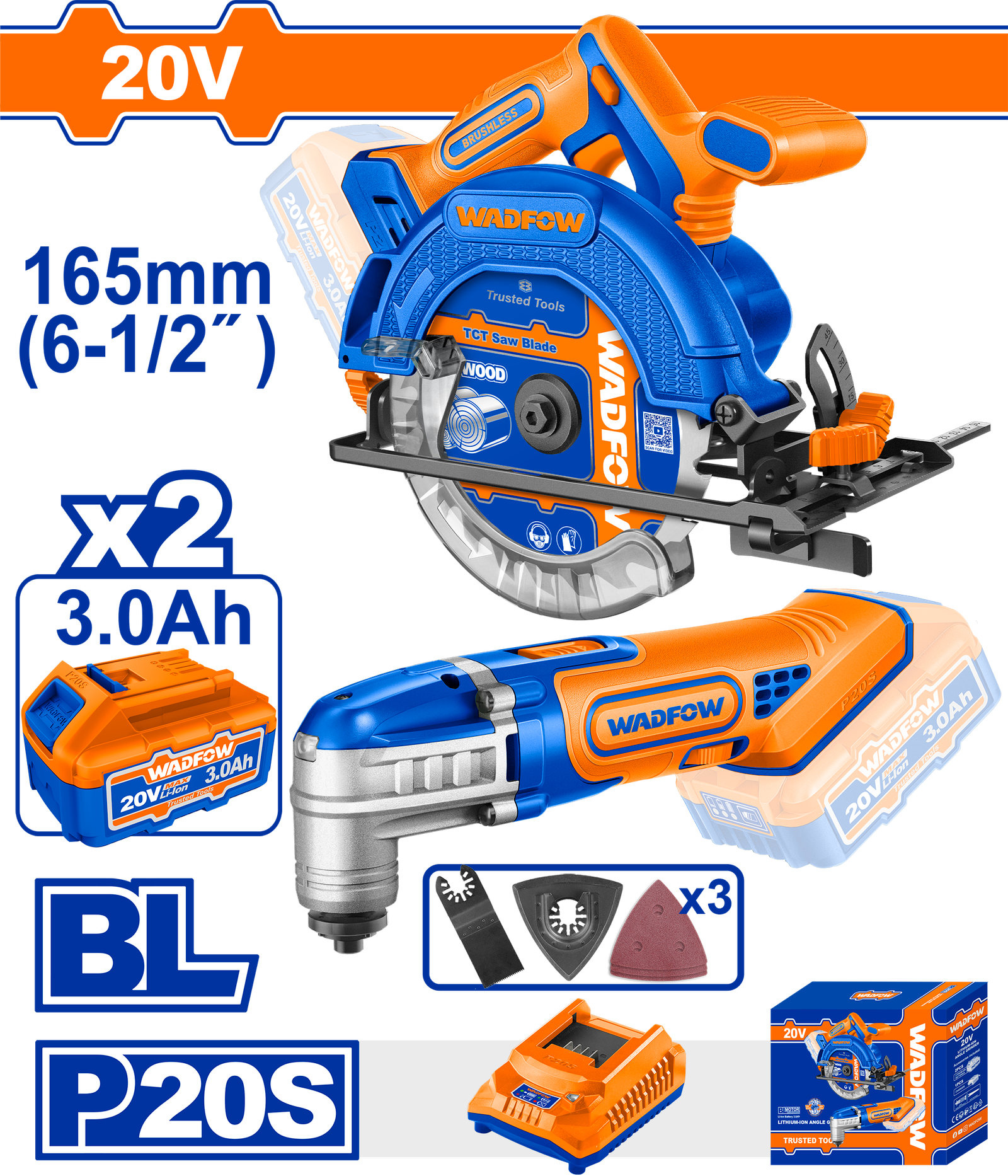 WOS240981 (Wadfow Cordless circular saw + cordless multi-tool Combo Set – P1C2)
