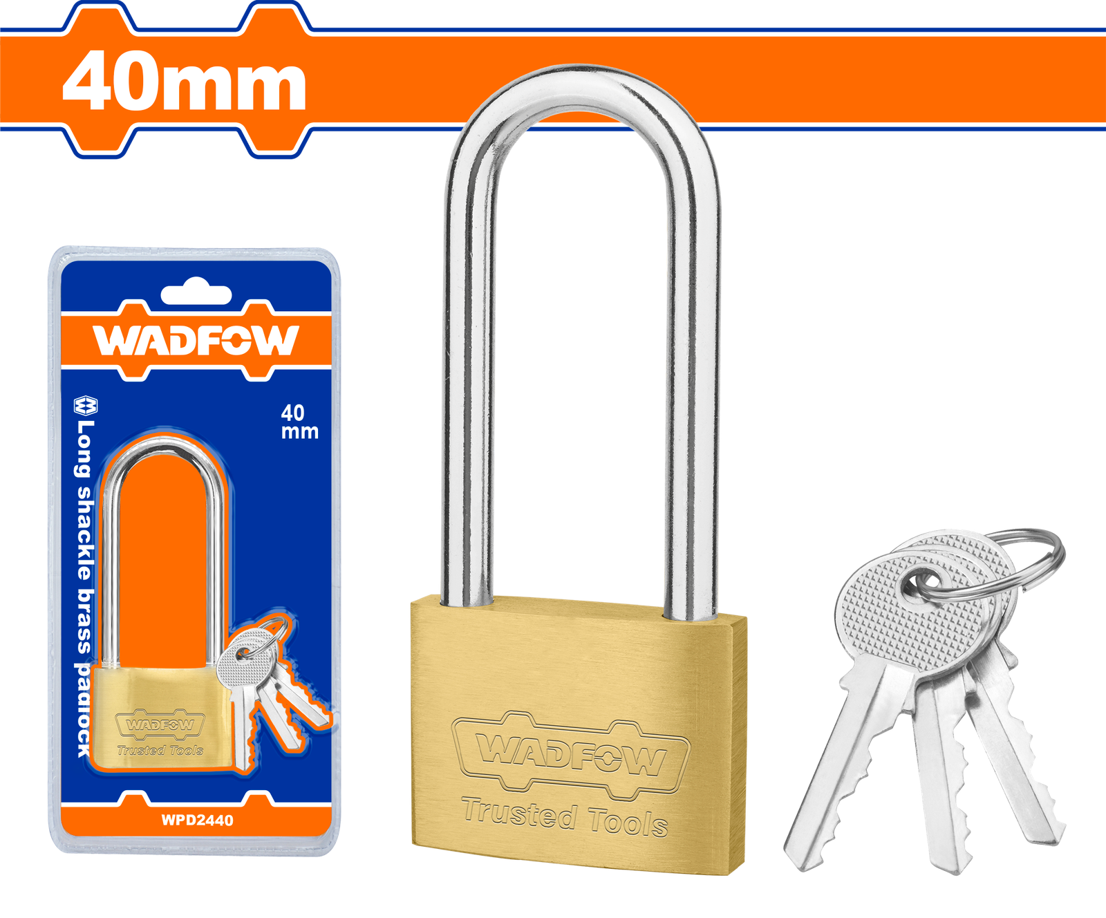 WPD2440 (Wadfow Long shackle brass padlock 40mm – P6C72)