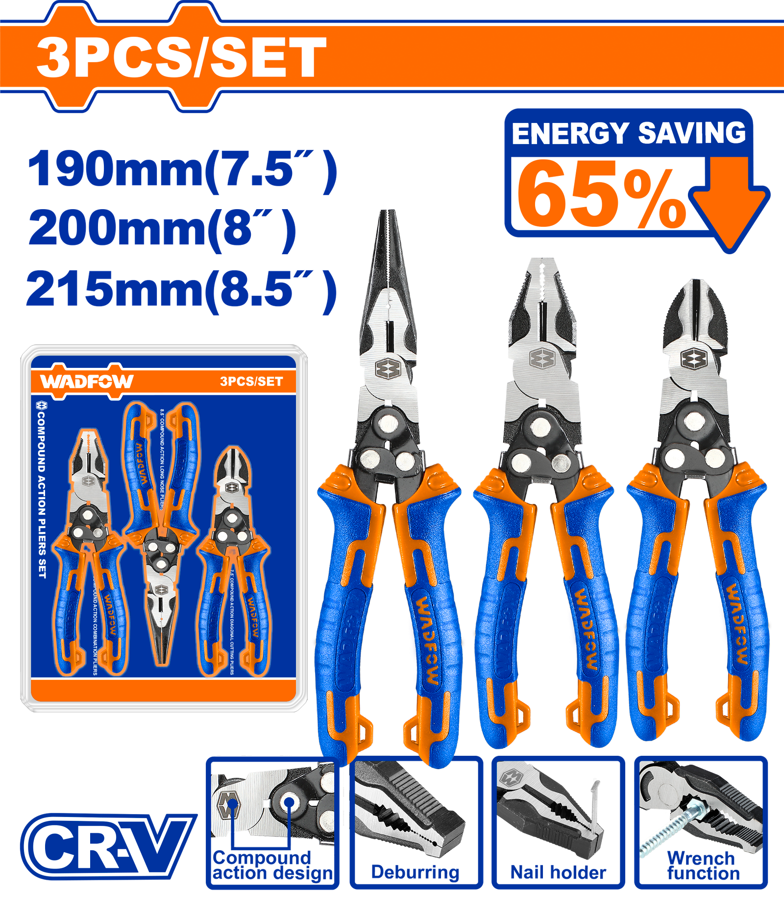 WPS0403 (Wadfow 3 Pcs compound action pliers set – P5C20)