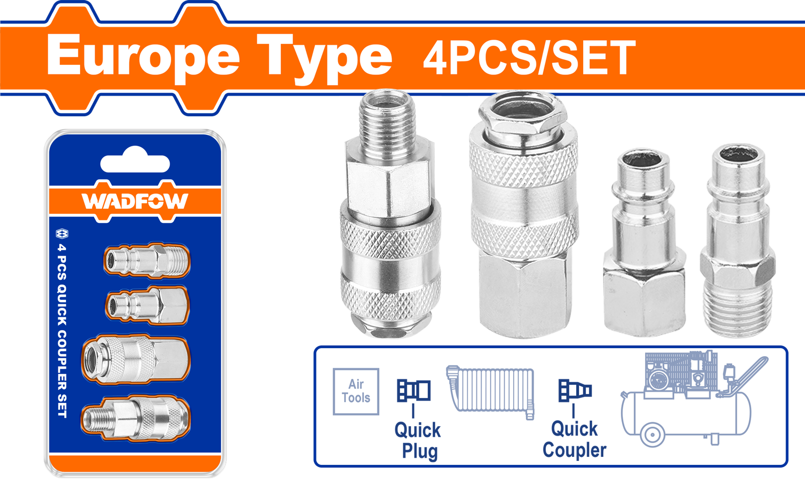 WQP4670 (Wadfow 4 Pcs air coupler and plug set 0.25″ – P30C120)