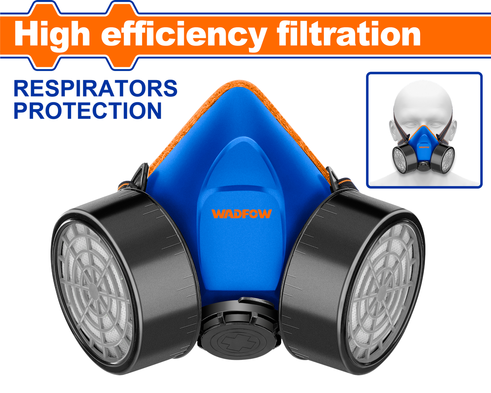 | Half mask respirator,include double cartridges Double cartridges for better filtering effect and reduce cartridge resistance for longer life Respirators protection Used in chemical, agricultural, mining, forestry and other industries Packed by color box Respirators protection |