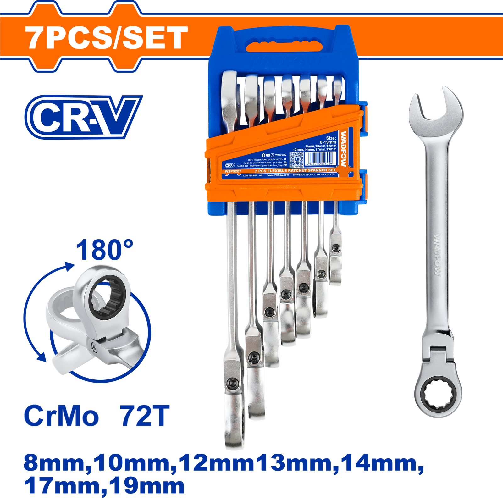 WSP5207 (Wadfow 7 Pcs flexible ratchet spanner set 9-19mm – C18)