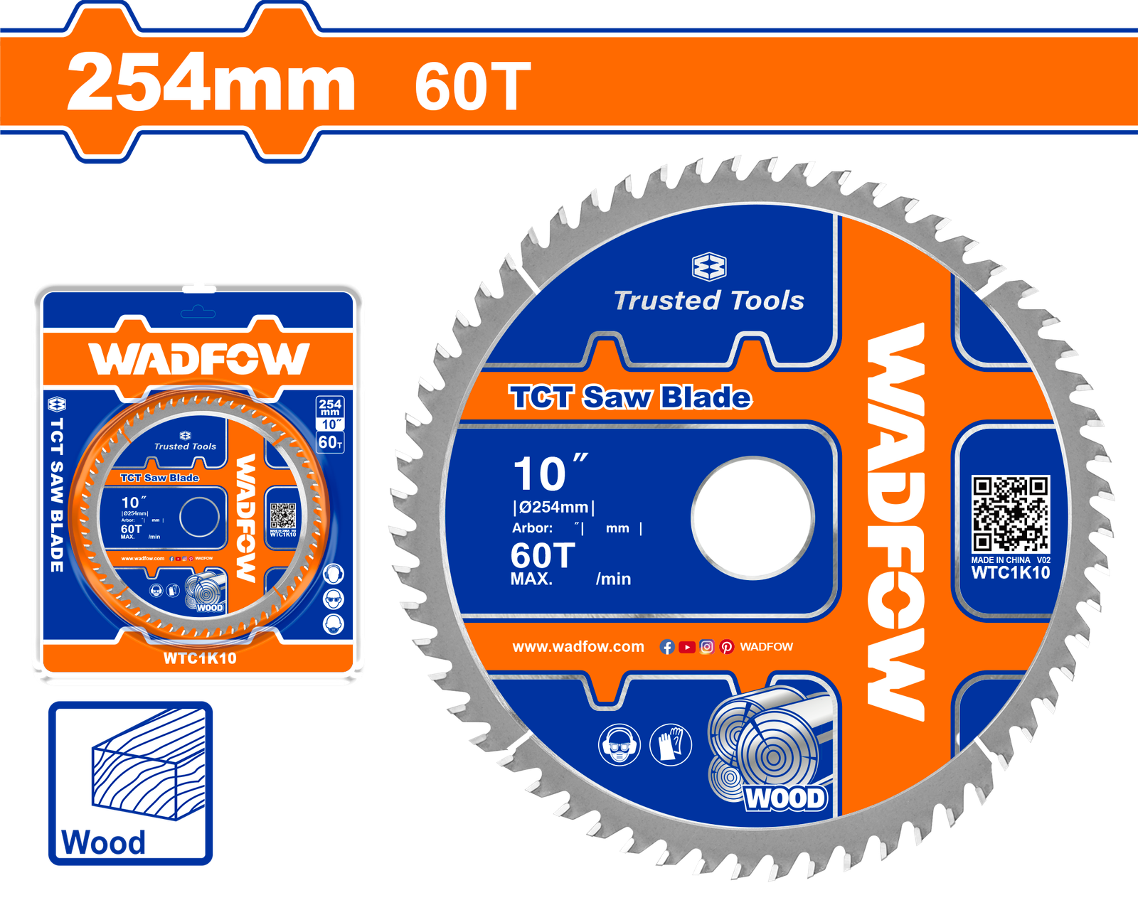 WTC1K10 (Wadfow TCT saw blade 10″ 60T wood – P5C25)