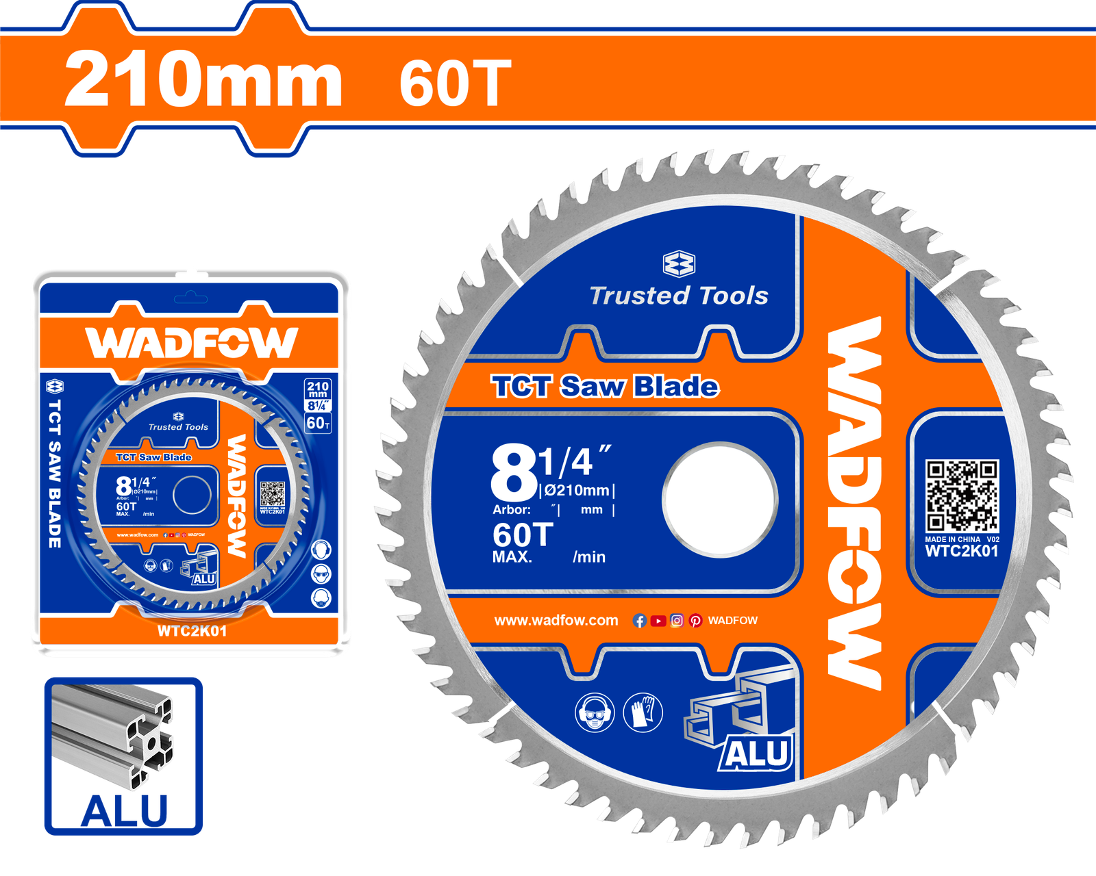 WTC2K01 (Wadfow TCT saw blade 8″ 60T Aluminium – P5C25)