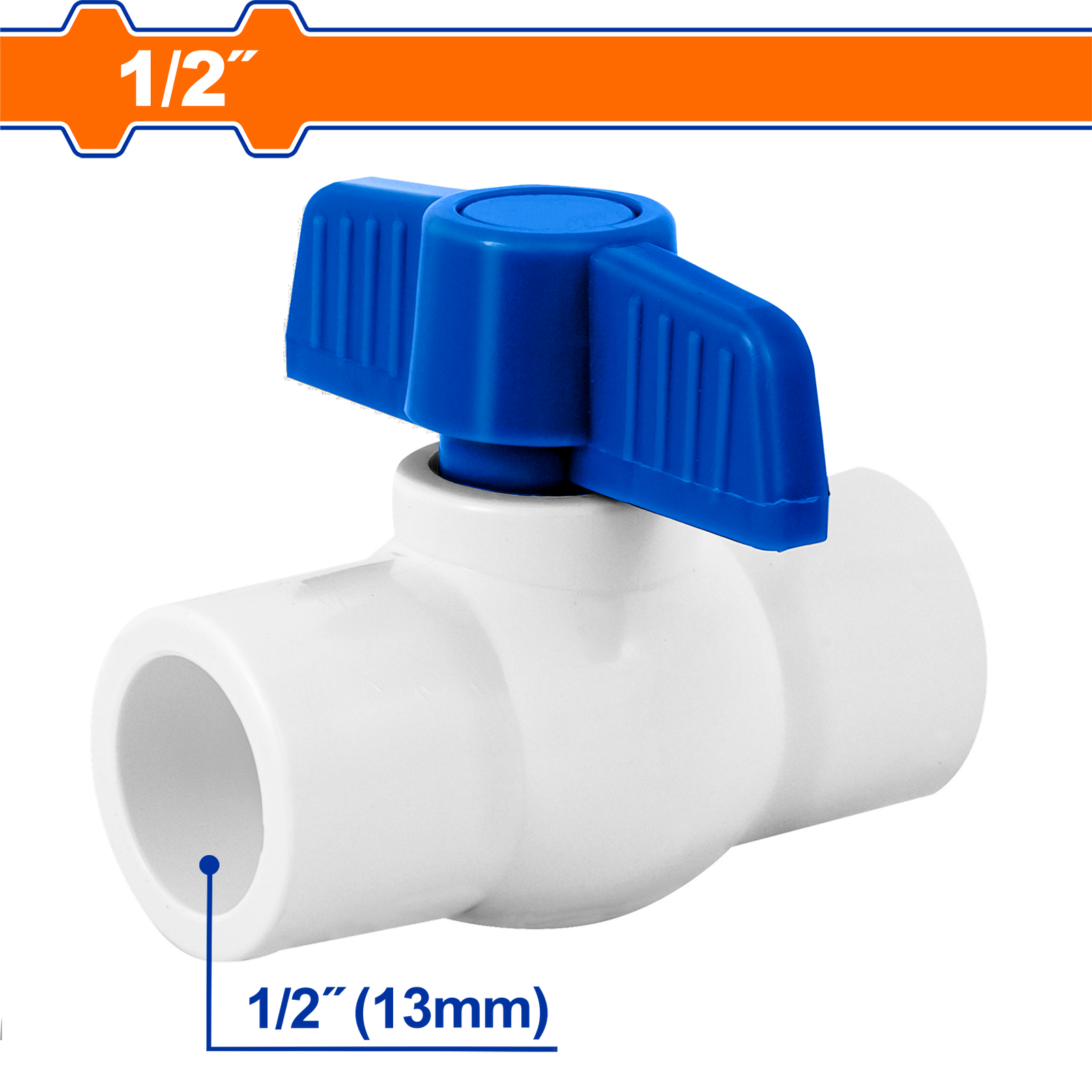 | 1/2″(13mm) For bonding to PVC pipe Material: PVC body and ball ABS handle For high pressure cold water supply Max pressure 1,034 kPa / 150 PSI Max temperature 65 °C The unit price is for one piece, and the package is 5set in one polybag Packed by poly bag |